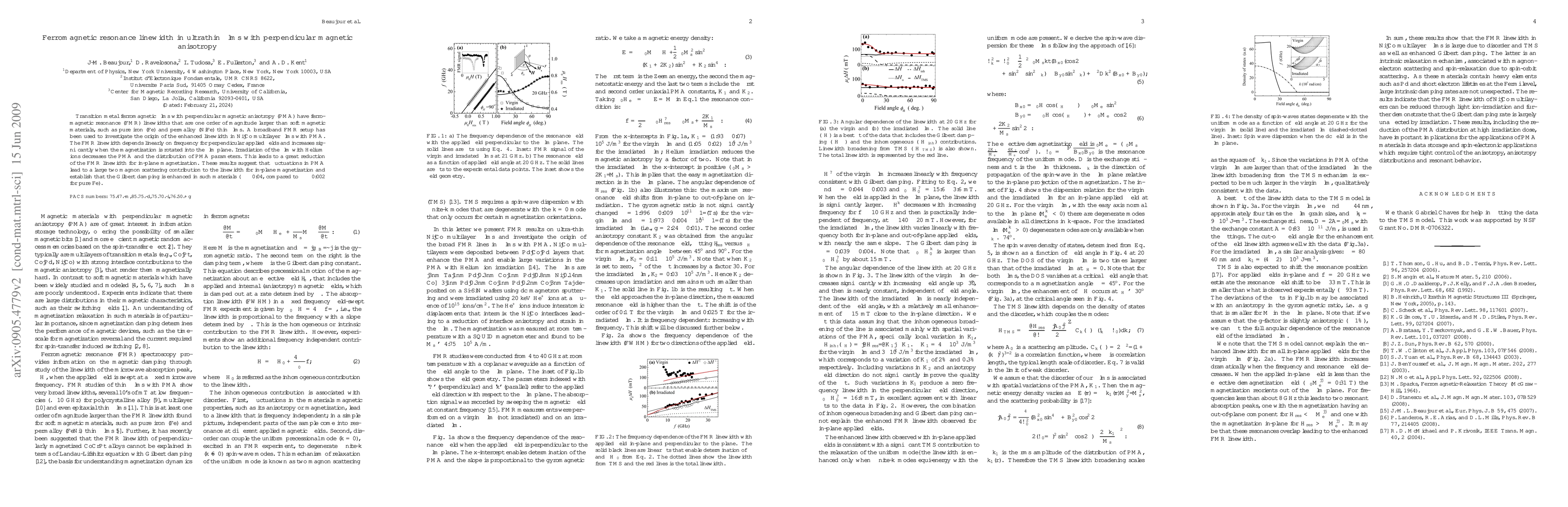This study investigates the enhanced ferromagnetic resonance (FMR) linewidth in ultrathin films with perpendicular magnetic anisotropy (PMA), finding that it is significantly larger than in soft magnetic materials. The research reveals that fluctuations in PMA lead to increased two magnon scattering and higher Gilbert damping, explaining the observed linewidth behavior.