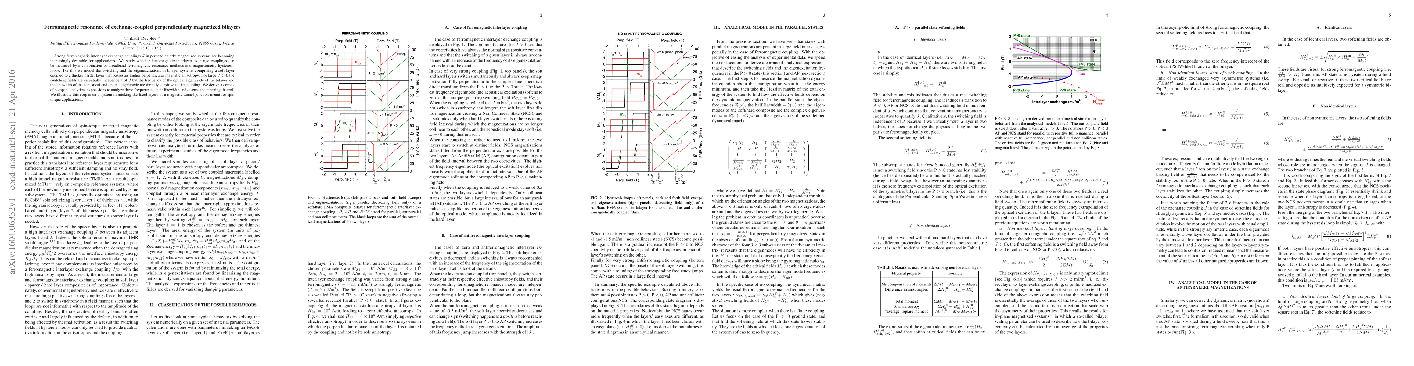 This paper investigates the ferromagnetic resonance in exchange-coupled perpendicularly magnetized bilayers, demonstrating that while the switching fields are independent of strong interlayer exchange coupling, the resonance frequencies and linewidths are directly sensitive to it. Analytical expressions are derived to analyze these effects, with applications to magnetic tunnel junctions for spin torque.