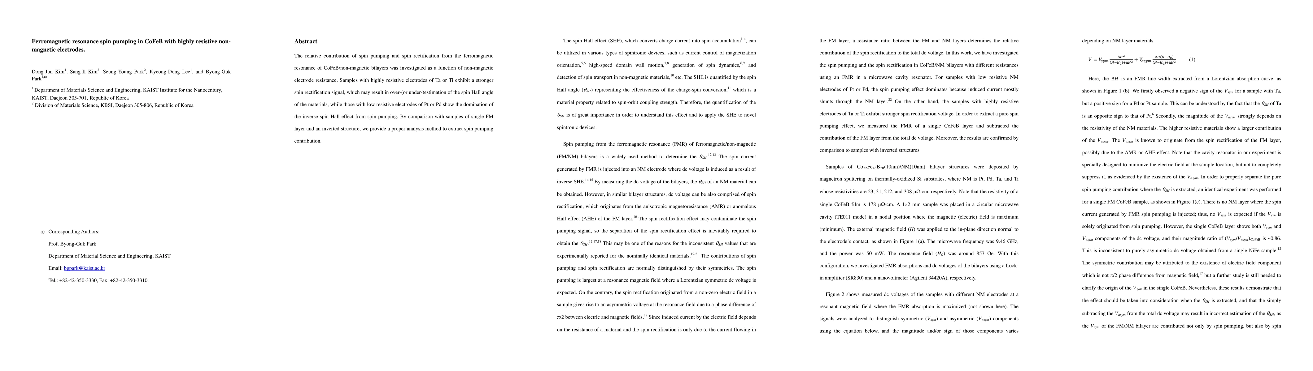 This study investigates the effects of varying non-magnetic electrode resistance on spin pumping and spin rectification in CoFeB ferromagnetic resonance. Highly resistive electrodes like Ta or Ti enhance spin rectification, potentially skewing spin Hall angle estimates, while low resistive electrodes like Pt or Pd favor the inverse spin Hall effect from spin pumping.