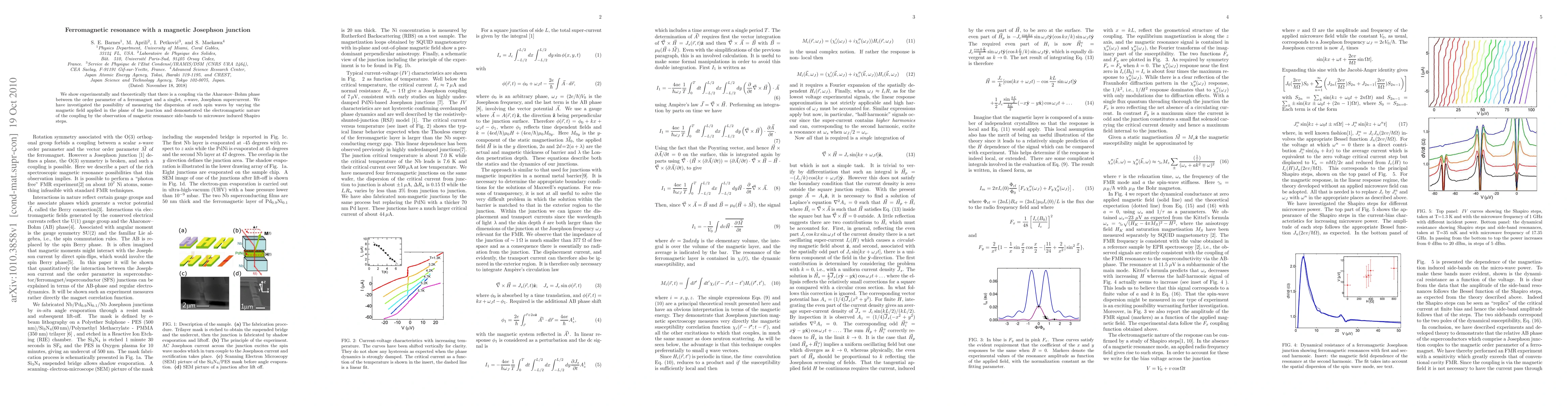 We show experimentally and theoretically that there is a coupling via the Aharonov-Bohm phase between the order parameter of a ferromagnet and a singlet, s-wave, Josephson supercurrent. We have investigated the possibility of measuring the dispersion of such spin waves by varying the magnetic field applied in the plane of the junction and demonstrated the electromagnetic nature of the coupling by the observation of magnetic resonance side-bands to microwave induced Shapiro steps.