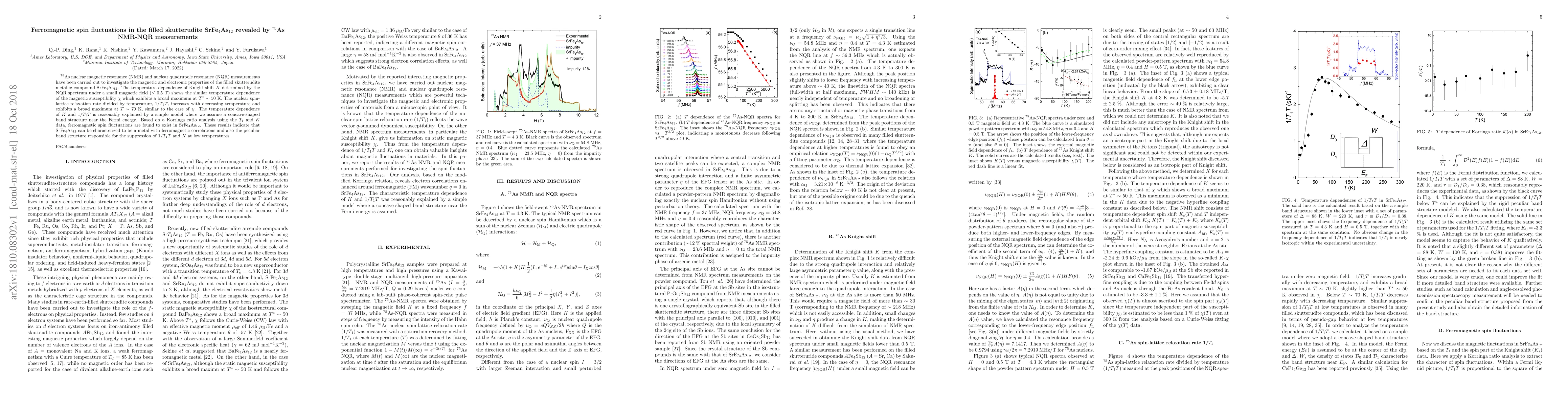 The study uses 75As NMR-NQR measurements to reveal ferromagnetic spin fluctuations in the metallic compound SrFe4As12. Temperature-dependent Knight shift and nuclear spin-lattice relaxation rate suggest broad maxima, correlating with magnetic susceptibility. The findings indicate SrFe4As12 exhibits ferromagnetic correlations and a unique band structure, suppressing 1/T1T and K at low temperatures.