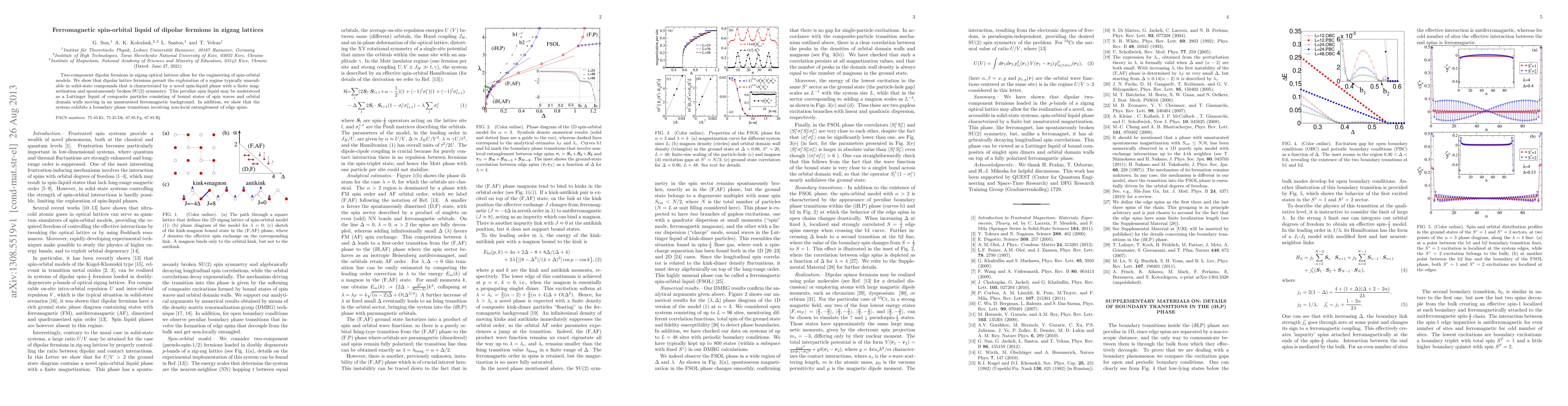 Two-component dipolar fermions in zigzag optical lattices allow for the engineering of spin-orbital models. We show that dipolar lattice fermions permit the exploration of a regime typically unavailable in solid-state compounds that is characterized by a novel spin-liquid phase with a finite magnetization and spontaneously broken SU(2) symmetry. This peculiar spin liquid may be understood as a Luttinger liquid of composite particles consisting of bound states of spin waves and orbital domain walls moving in an unsaturated ferromagnetic background. In addition, we show that the system exhibits a boundary phase transitions involving non-local entanglement of edge spins.