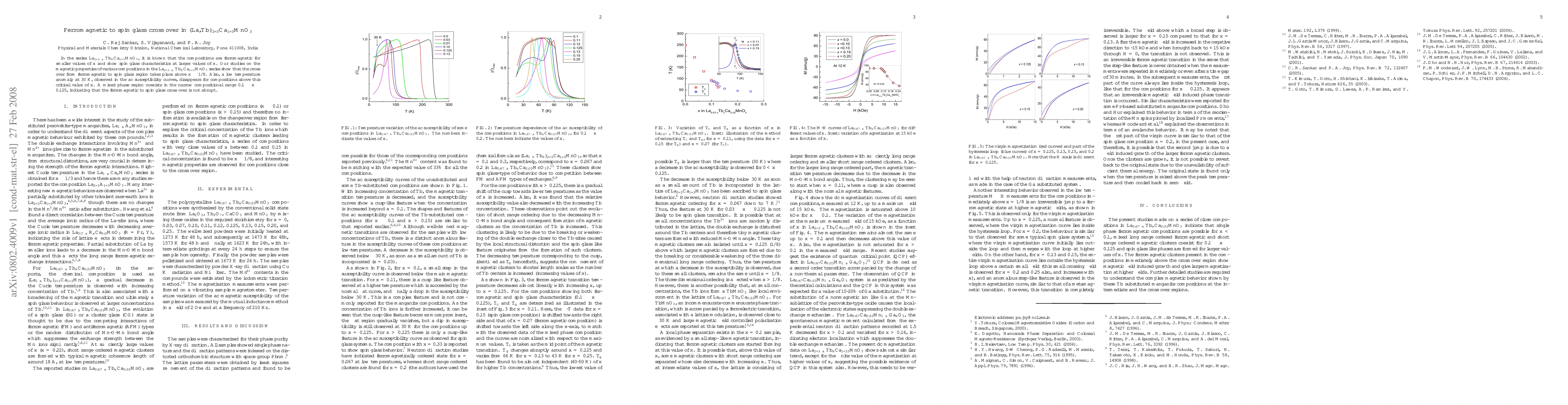 In the series La_{2/3-x}Tb_{x}Ca_{1/3}MnO_{3}, it is known that the compositions are ferromagnetic for smaller values of x and show spin glass characteristics at larger values of x. Our studies on the magnetic properties of various compositions in the La_{2/3-x}Tb_{x}Ca_{1/3}MnO_{3} series show that the cross over from ferromagnetic to spin glass region takes place above x ~ 1/8. Also, a low temperature anomaly at 30 K, observed in the ac susceptibility curves, disappears for compositions above this critical value of x. A mixed phase region coexists in the narrow compositional range 0.1 <= x <= 0.125, indicating that the ferromagnetic to spin glass cross over is not abrupt.