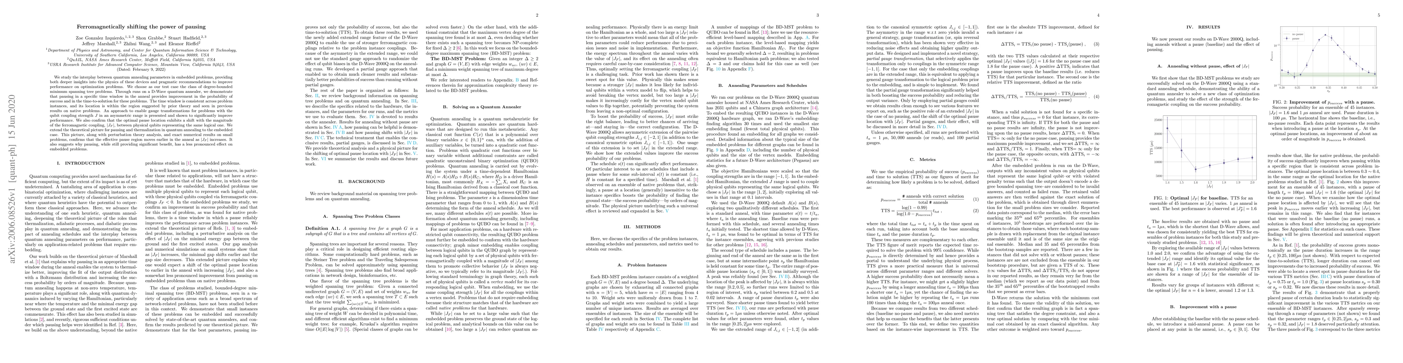 Researchers found that pausing during quantum annealing can improve performance on optimization problems by a specific time window, which shifts with the strength of ferromagnetic coupling between physical qubits.