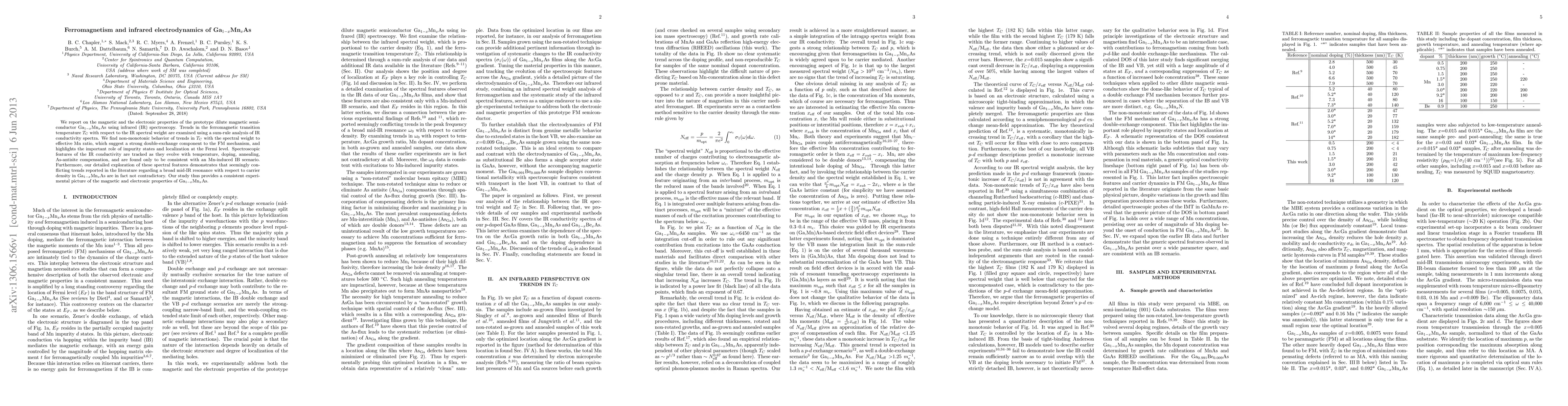 This paper investigates the magnetic and electronic properties of Ga$_{1-x}$Mn$_x$As using infrared spectroscopy, revealing non-monotonic trends in the ferromagnetic transition temperature $T_C$ related to spectral weight and Mn ratio, and providing a unified view of conflicting reports on IR conductivity features.
