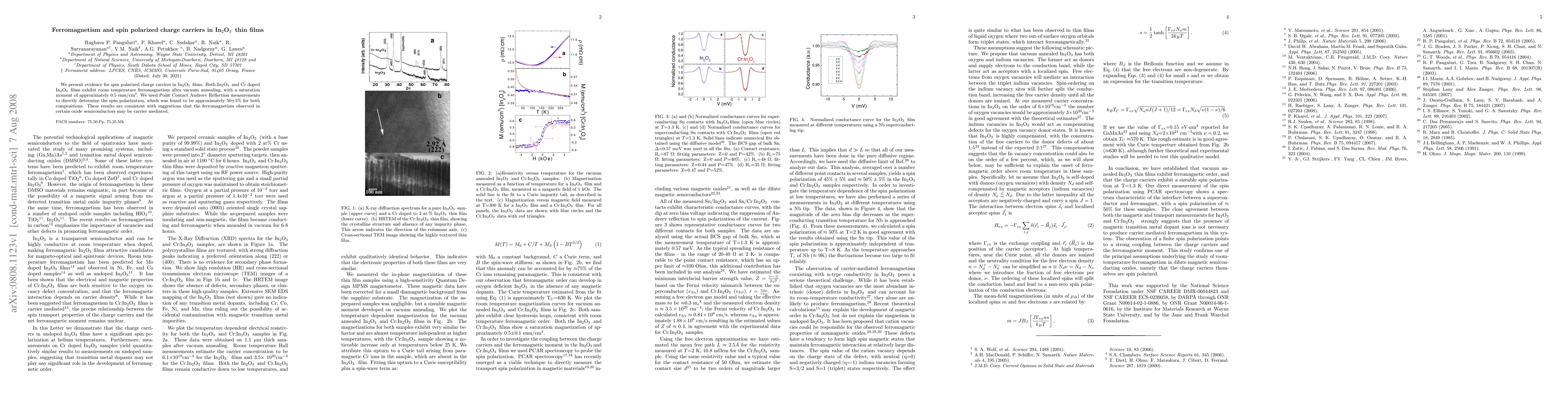 We present evidence for spin polarized charge carriers in In$_2$O$_3$ films. Both In$_2$O$_3$ and Cr doped In$_2$O$_3$ films exhibit room temperature ferromagnetism after vacuum annealing, with a saturation moment of approximately 0.5 emu/cm$^3$. We used Point Contact Andreev Reflection measurements to directly determine the spin polarization, which was found to be approximately 50$\pm$5% for both compositions. These results are consistent with suggestions that the ferromagnetism observed in certain oxide semiconductors may be carrier mediated.