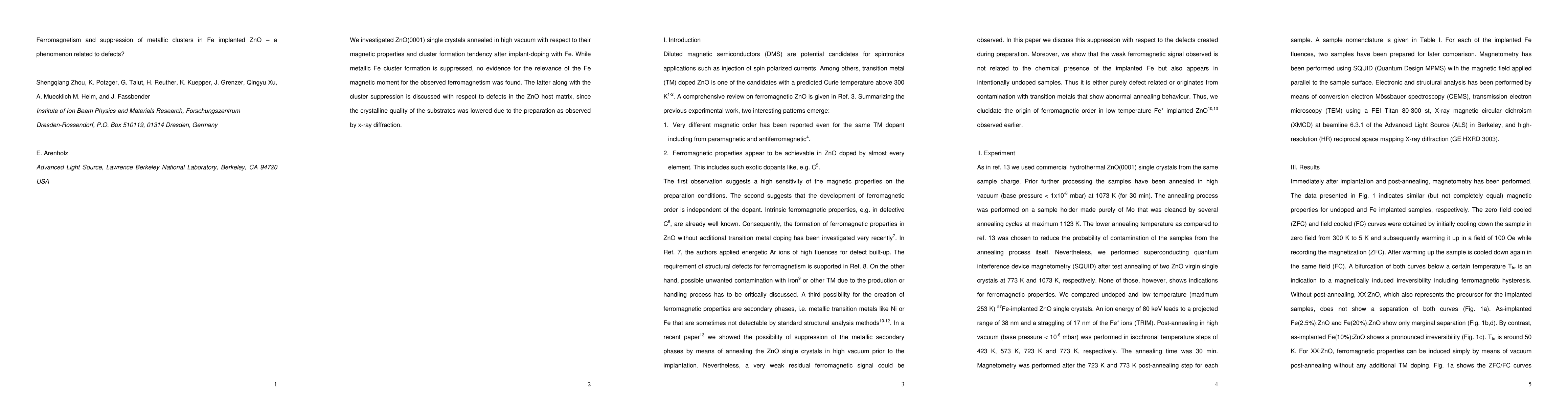 Summary: This study explores the magnetic properties of Fe-implanted ZnO crystals, finding that Fe-induced ferromagnetism persists despite the suppression of metallic Fe cluster formation. The observed ferromagnetism is not linked to the Fe magnetic moment, suggesting defects in the ZnO matrix play a crucial role.