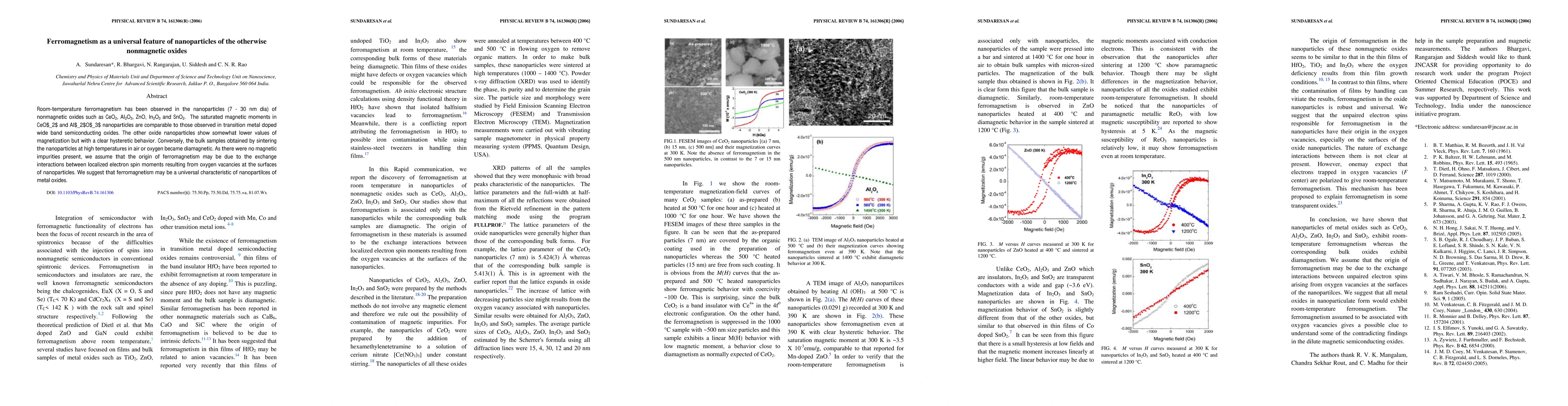 This study reveals room-temperature ferromagnetism in nanoparticles of nonmagnetic oxides like CeO2, Al2O3, ZnO, In2O3, and SnO2, likely due to exchange interactions from surface oxygen vacancies. Bulk samples of these oxides, however, are diamagnetic, indicating that ferromagnetism is a unique feature of their nanoparticle form.