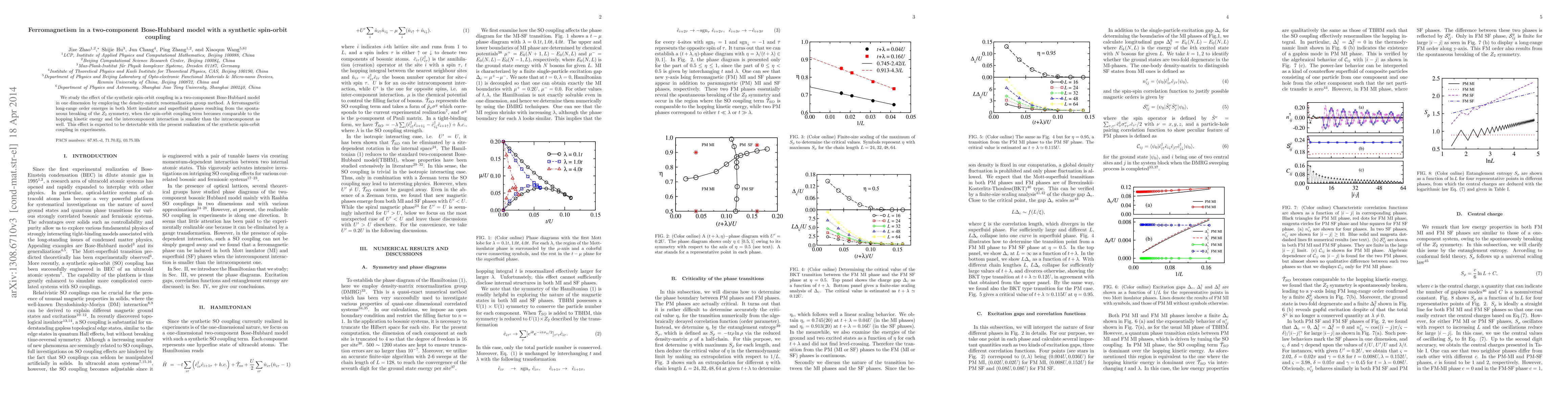 This paper investigates ferromagnetism in a one-dimensional two-component Bose-Hubbard model with synthetic spin-orbit coupling, revealing a spontaneous $Z_2$ symmetry breaking that leads to ferromagnetic long-range order in both Mott insulator and superfluid phases. The effect is predicted to be observable with current experimental techniques.
