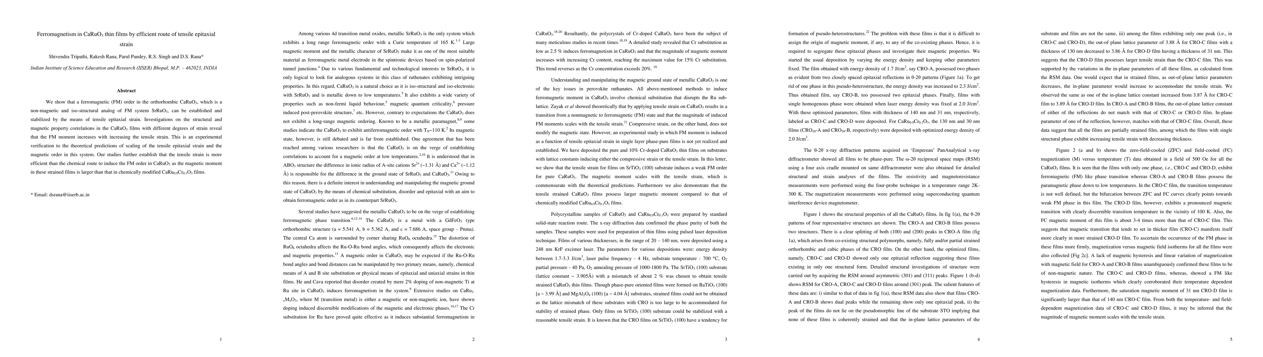 This study demonstrates that tensile epitaxial strain can induce ferromagnetism in non-magnetic CaRuO3 thin films, with the magnetic moment scaling with strain. Tensile strain proves more effective than chemical doping in achieving greater magnetic moments in these films.
