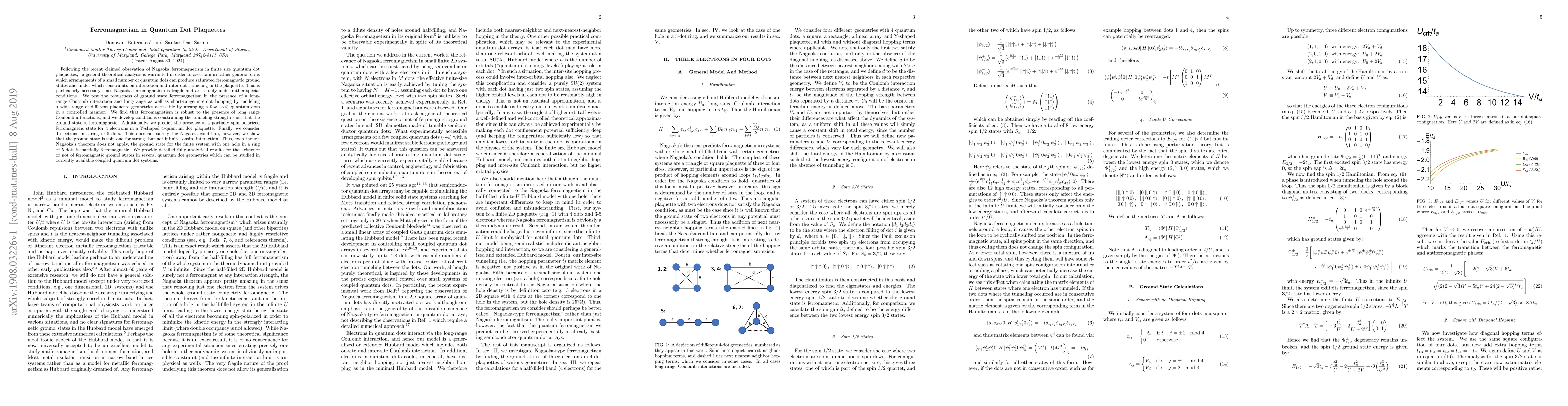 Research reveals that ferromagnetism can occur in small quantum dot plaquettes under specific conditions, even with long-range interactions, and provides detailed analysis of various geometries.