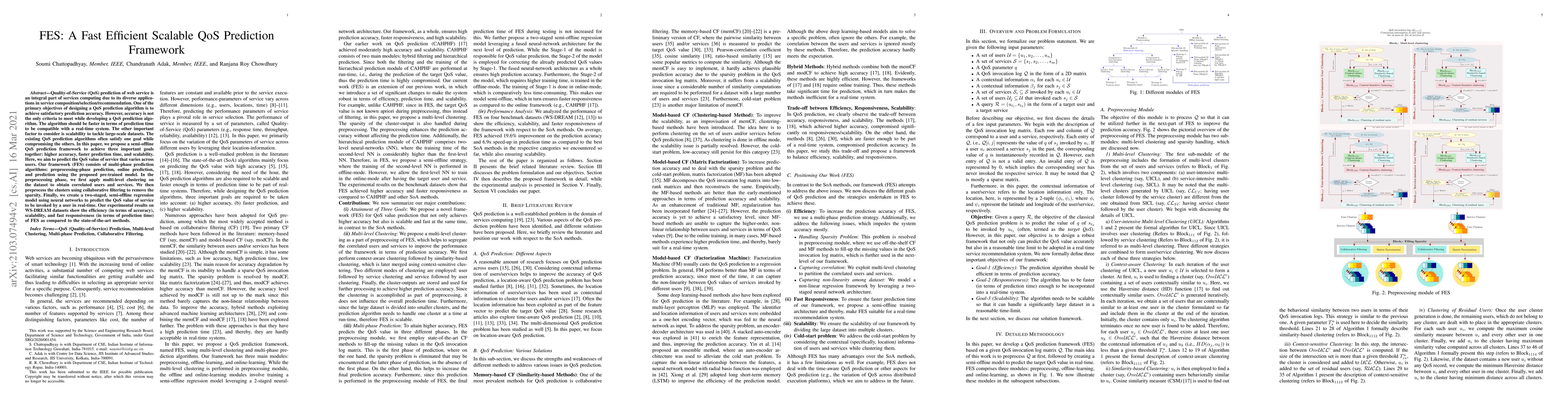 This paper proposes a semi-offline QoS prediction framework (FES) that achieves higher accuracy, faster prediction time, and scalability for web service quality prediction. The framework uses multi-phase algorithms and neural networks to predict service quality values, demonstrating superior performance compared to existing methods.