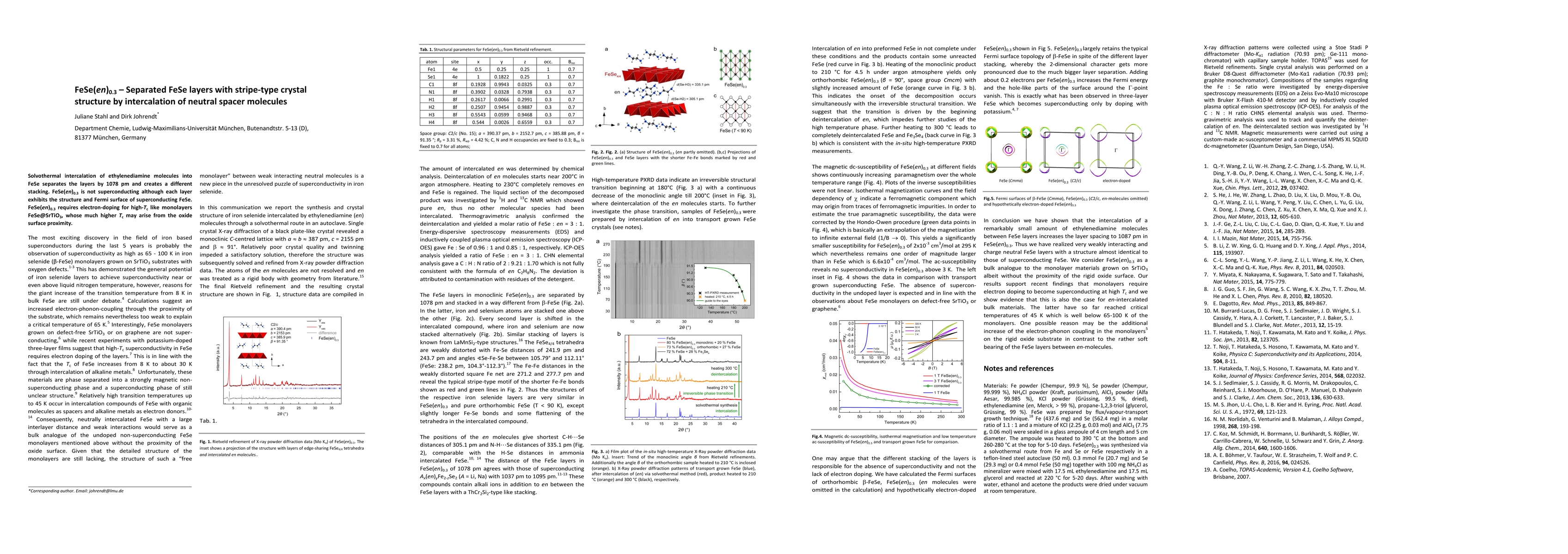FeSe layers are separated by ethylenediamine molecules through solvothermal intercalation, forming a stripe-type crystal structure without superconductivity. Electron-doping is needed for high-temperature superconductivity, similar to FeSe on SrTiO3.
