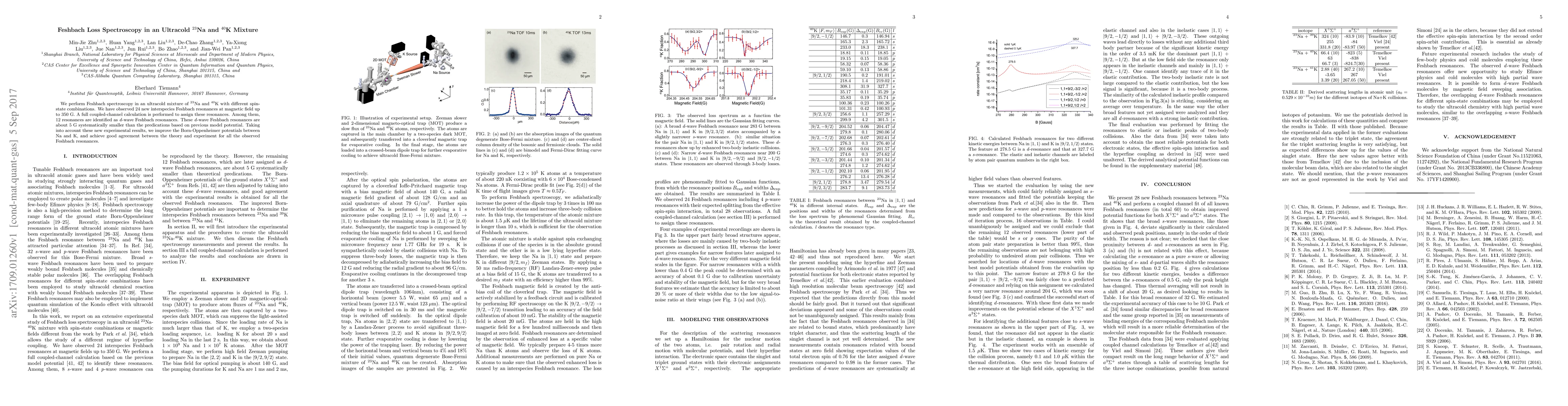 The paper presents a comprehensive coupled-channel calculation for assigning observed Feshbach resonances and improves Born-Oppenheimer potentials between Na and K.