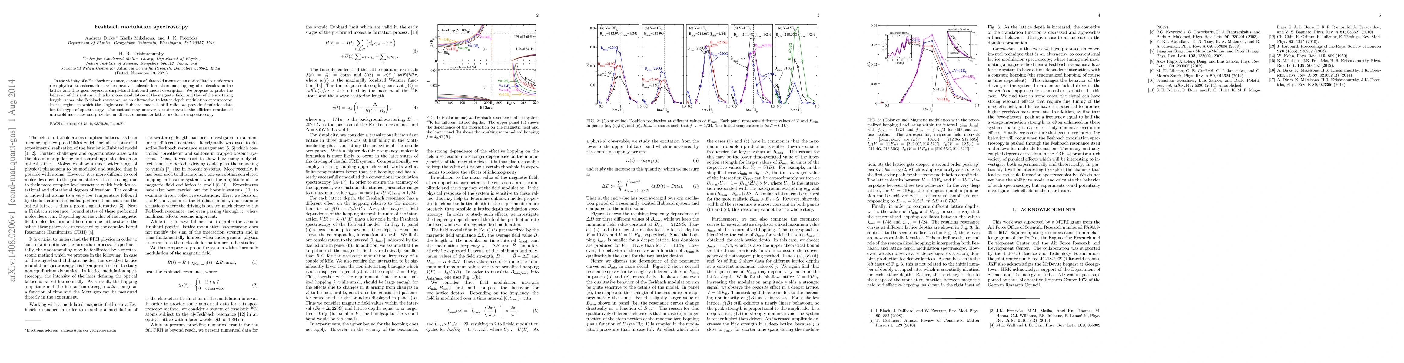 Feshbach modulation spectroscopy investigates ultracold atom systems near Feshbach resonances, proposing harmonic magnetic field modulation to probe molecule formation and hopping, offering an alternative to lattice-depth modulation and potentially enabling efficient molecule creation. Simulation data supports its validity within the single-band Hubbard model regime.