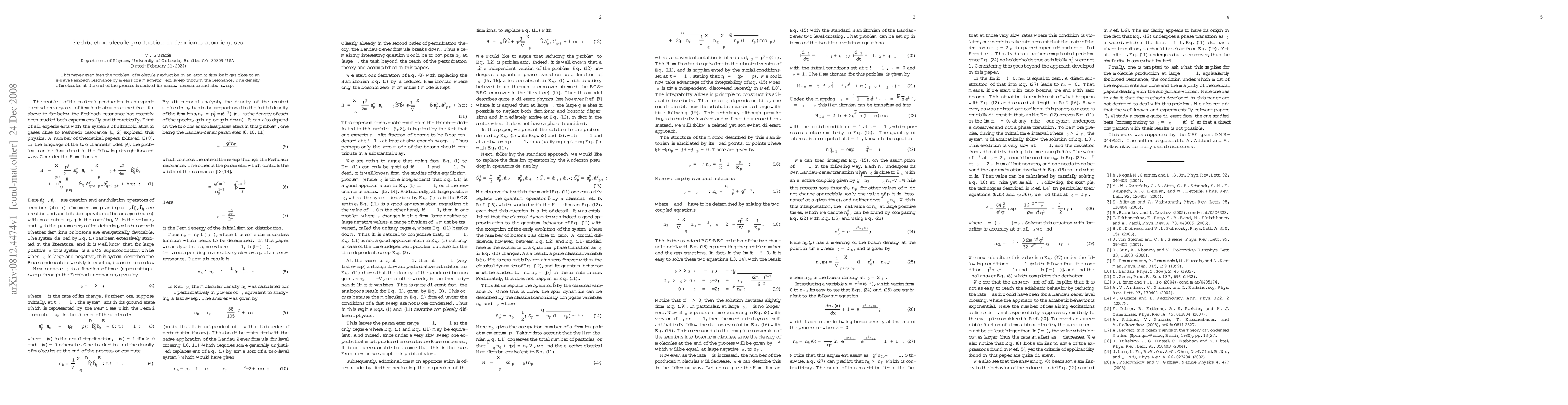 Summary: This research investigates molecule production in fermionic atomic gases via magnetic field-induced s-wave Feshbach resonance, deriving the final molecule density under conditions of narrow resonance and slow magnetic sweep. The study focuses on the efficiency of this method for creating Feshbach molecules.