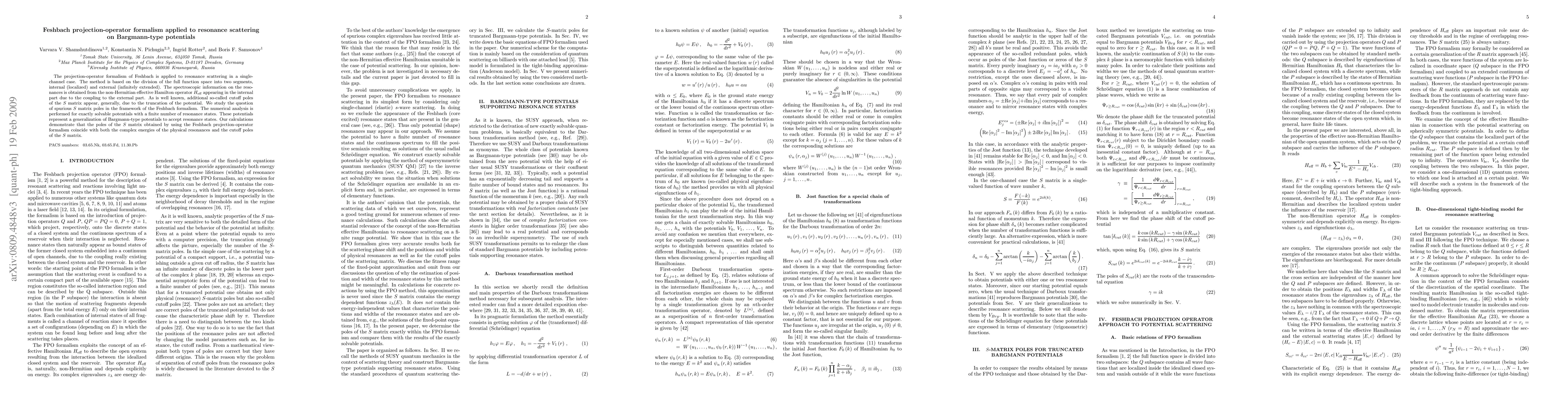 This paper applies Feshbach's projection-operator formalism to study resonance scattering in single-channel systems with Bargmann-type potentials, finding that the formalism accurately predicts both physical resonances and spurious cut-off poles.