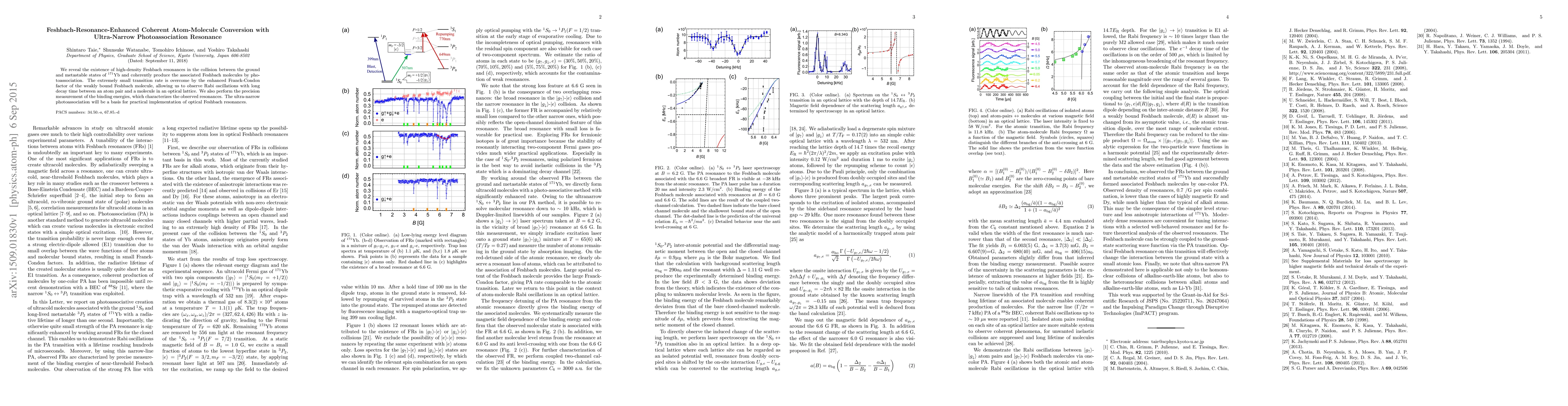 This paper demonstrates high-density Feshbach resonances in $^{171}$Yb atoms, achieving coherent atom-molecule conversion via ultra-narrow photoassociation. The study observes Rabi oscillations and measures binding energies, establishing a foundation for practical optical Feshbach resonance applications.