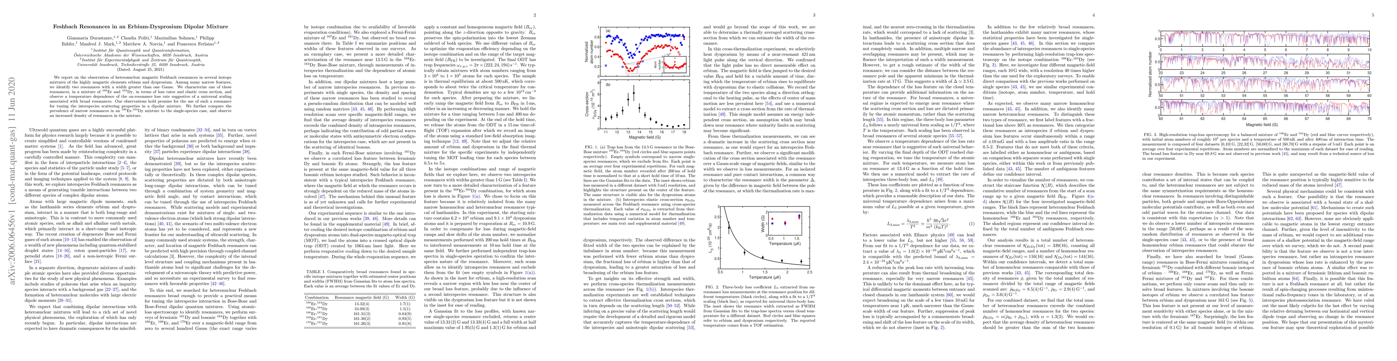 This paper reports on the discovery of heteronuclear magnetic Feshbach resonances in erbium-dysprosium mixtures, identifying two broad resonances with significant implications for tuning interspecies scattering in dipolar mixtures. The study also notes an increased density of resonances in the mixture compared to single-species cases.