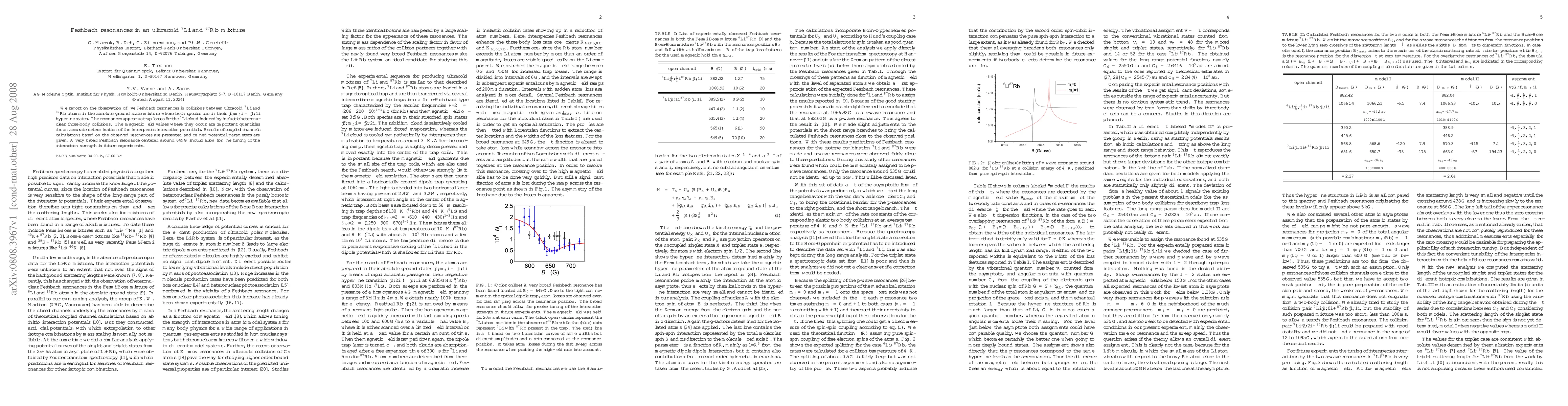 Paul S. Julienne, Y. -D. Chen, S. Tung et al.