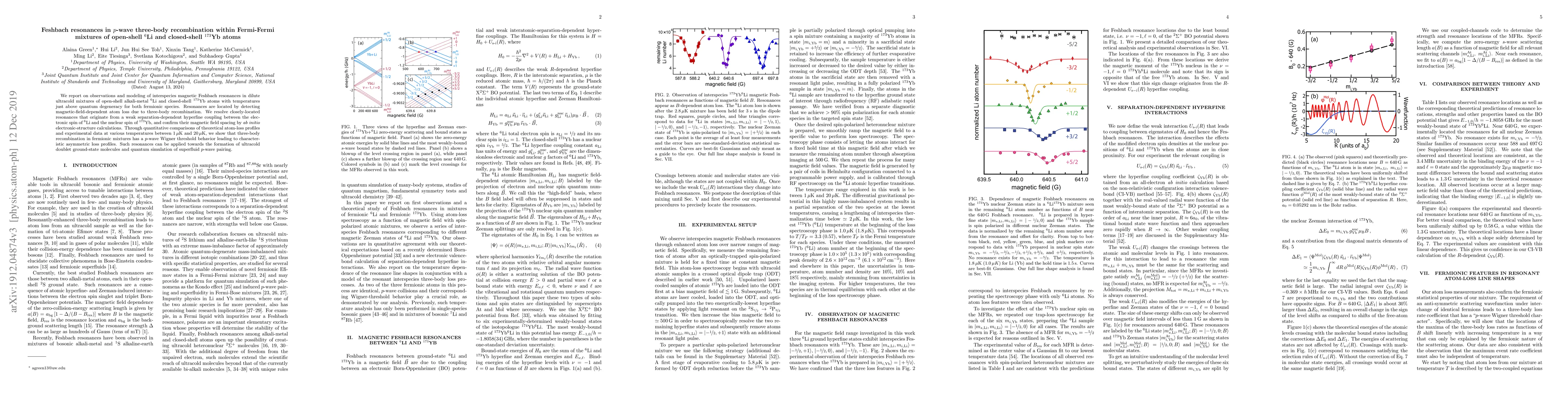This paper reports on the observation and modeling of magnetic Feshbach resonances in ultracold Fermi-Fermi mixtures of $^6$Li and $^{173}$Yb atoms, revealing $p$-wave three-body recombination behavior and asymmetric atom-loss profiles due to weak hyperfine coupling. The findings can aid in forming ultracold doublet molecules and quantum simulations of superfluid pairing.