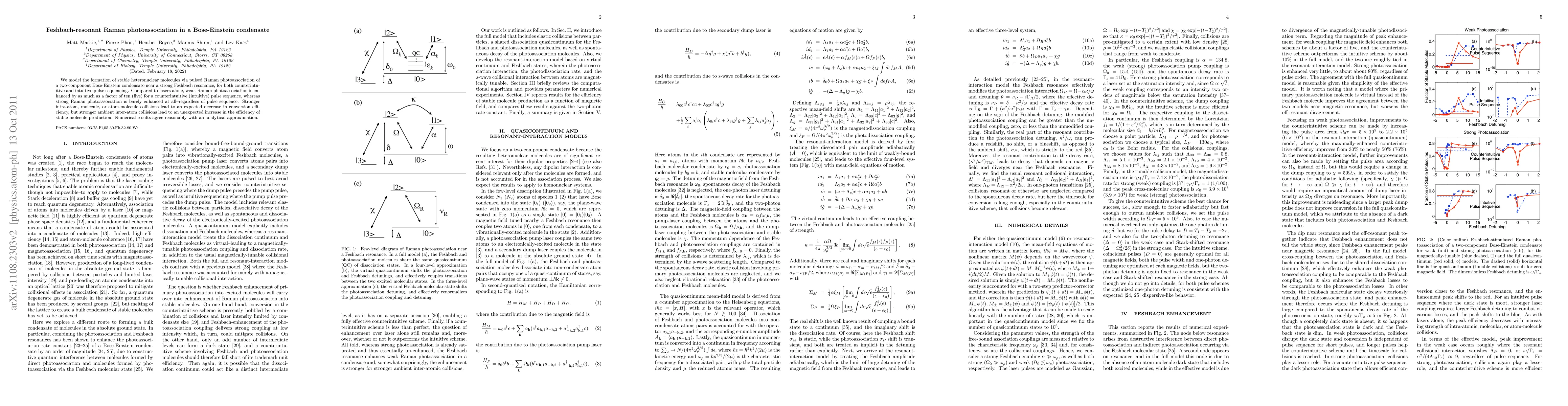 The paper presents a detailed quasicontinuum mean-field model and a resonant-interaction model for analyzing Raman photoassociation near Feshbach resonances, providing a comprehensive framework for understanding and optimizing molecular formation in Bose-Einstein condensates.