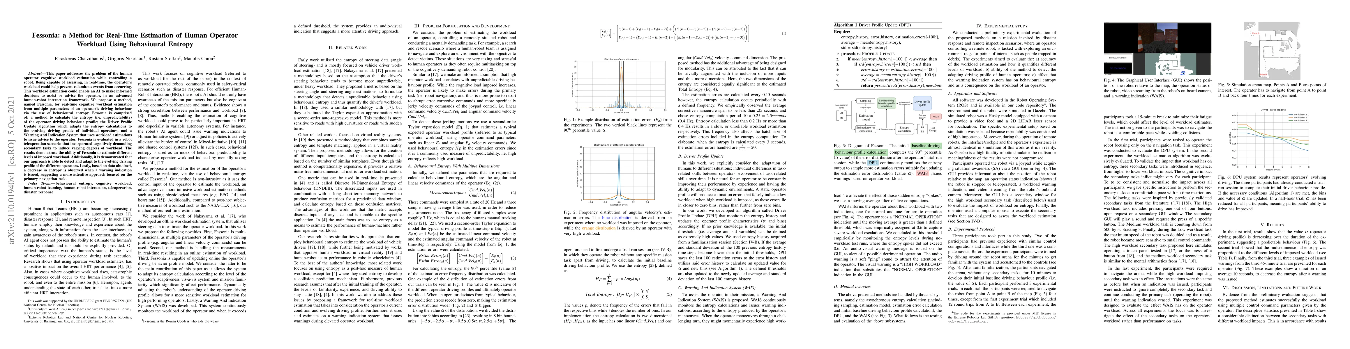 The research introduces Fessonia, a real-time method estimating human operator workload using behavioral entropy. It adapts to individual operators, effectively detects workload changes, and demonstrates its utility in a teleoperation scenario, suggesting potential for improved human-robot interaction and safety.