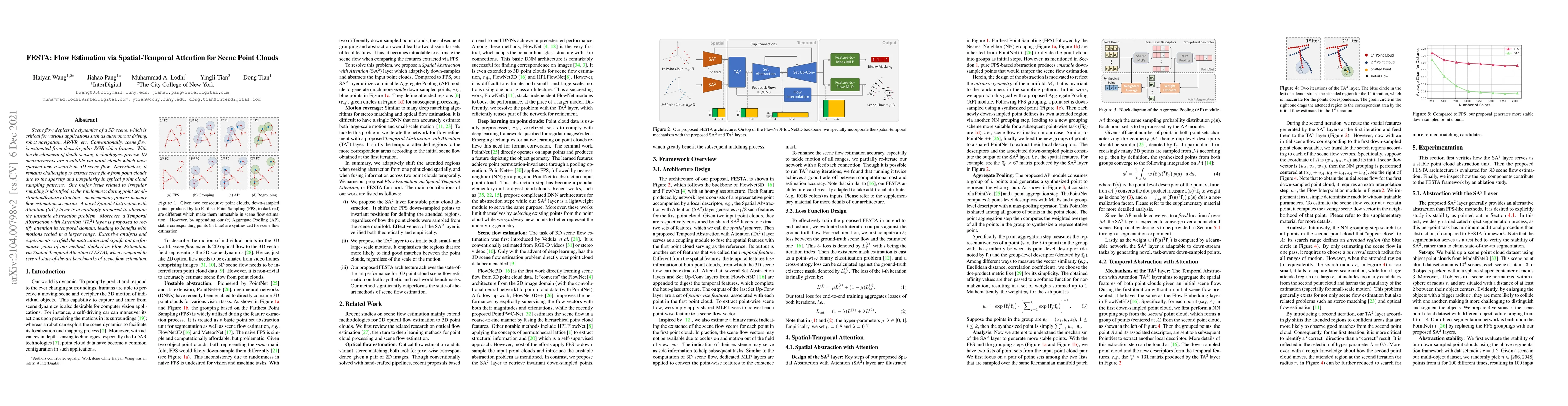FESTA introduces Spatial-Temporal Attention layers to improve the estimation of scene flow from irregularly sampled 3D point clouds, addressing the challenges of sparsity and randomness in feature extraction. The method demonstrates significant performance gains over existing benchmarks in various applications like autonomous driving and robot navigation.