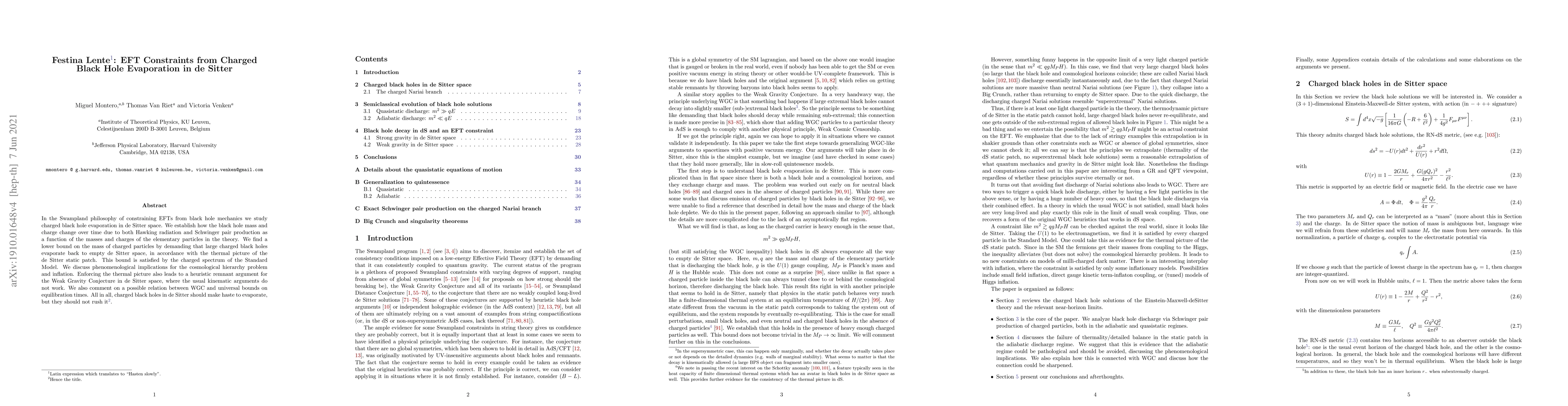 The paper presents a detailed analysis of charged black hole evaporation in de Sitter space, establishing a lower bound on charged particle masses, and proposing a heuristic argument for the Weak Gravity Conjecture in this context.