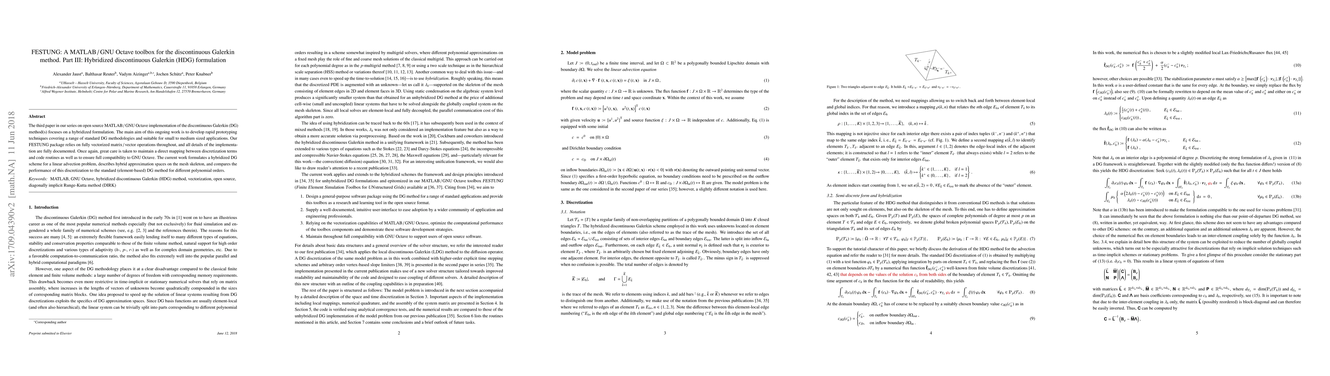 This paper presents the hybridized discontinuous Galerkin (HDG) formulation within the FESTUNG toolbox for MATLAB/GNU Octave, focusing on rapid prototyping for small to medium-sized applications. It introduces a hybridized DG scheme for linear advection, compares its performance against the standard DG method, and emphasizes full documentation and compatibility with GNU Octave.