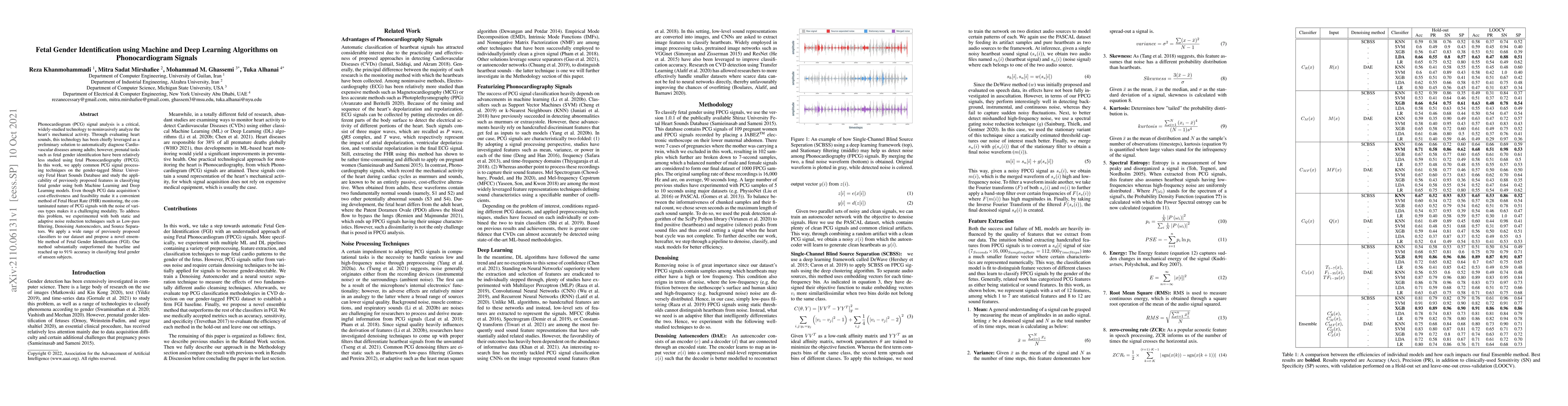 This research is significant as it explores the applicability of machine and deep learning models for noninvasive fetal gender identification using PCG signals, which could potentially offer a cost-effective and convenient method for Fetal Heart Rate monitoring.