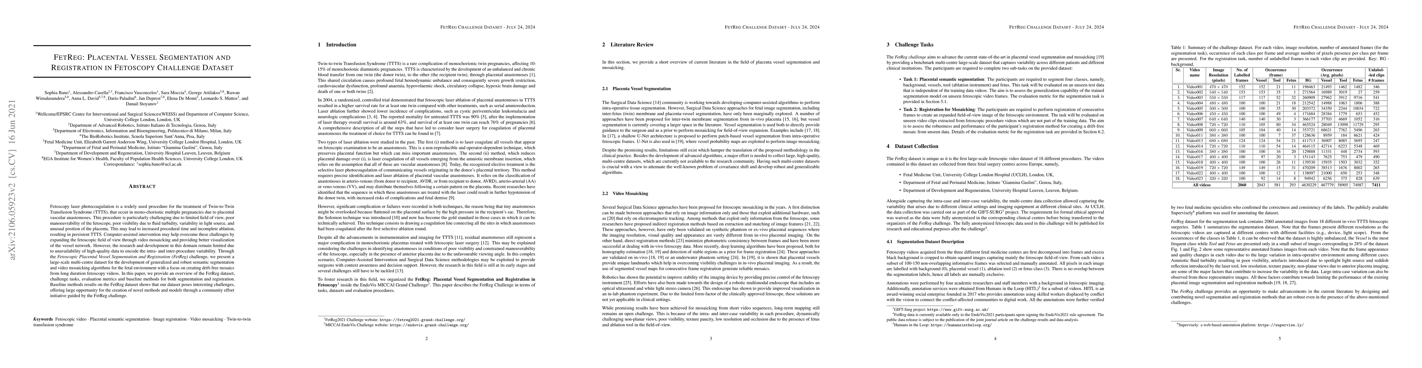 Fetoscopy laser photocoagulation is a widely used procedure for the treatment of Twin-to-Twin Transfusion Syndrome (TTTS), that occur in mono-chorionic multiple pregnancies due to placental vascular anastomoses. This procedure is particularly challenging due to limited field of view, poor manoeuvrability of the fetoscope, poor visibility due to fluid turbidity, variability in light source, and unusual position of the placenta. This may lead to increased procedural time and incomplete ablation, resulting in persistent TTTS. Computer-assisted intervention may help overcome these challenges by expanding the fetoscopic field of view through video mosaicking and providing better visualization of the vessel network. However, the research and development in this domain remain limited due to unavailability of high-quality data to encode the intra- and inter-procedure variability. Through the \textit{Fetoscopic Placental Vessel Segmentation and Registration (FetReg)} challenge, we present a large-scale multi-centre dataset for the development of generalized and robust semantic segmentation and video mosaicking algorithms for the fetal environment with a focus on creating drift-free mosaics from long duration fetoscopy videos. In this paper, we provide an overview of the FetReg dataset, challenge tasks, evaluation metrics and baseline methods for both segmentation and registration. Baseline methods results on the FetReg dataset shows that our dataset poses interesting challenges, offering large opportunity for the creation of novel methods and models through a community effort initiative guided by the FetReg challenge.
