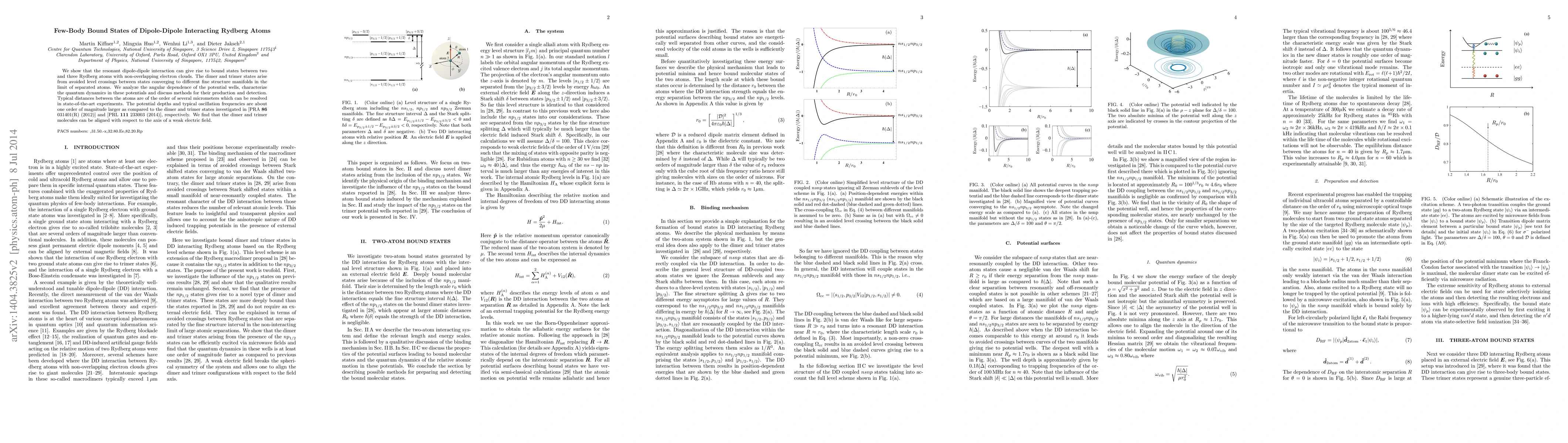 This paper investigates the formation of bound states between two and three Rydberg atoms due to resonant dipole-dipole interactions, analyzing their potential wells and dynamics. The study finds that these dimer and trimer states exhibit significantly larger potential depths and oscillation frequencies compared to previous investigations.