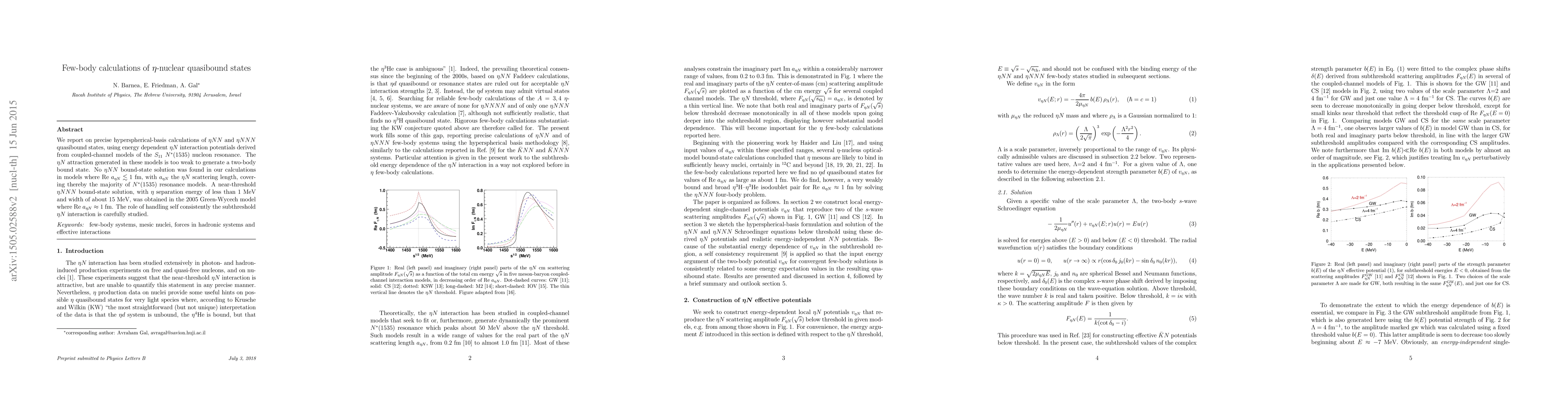 This paper reports precise calculations of $\eta NN$ and $\eta NNN$ quasibound states using energy-dependent $\eta N$ interaction potentials, finding no $\eta NN$ bound states but a near-threshold $\eta NNN$ bound state in the 2005 Green-Wycech model. The study highlights the importance of self-consistently handling the subthreshold $\eta N$ interaction.