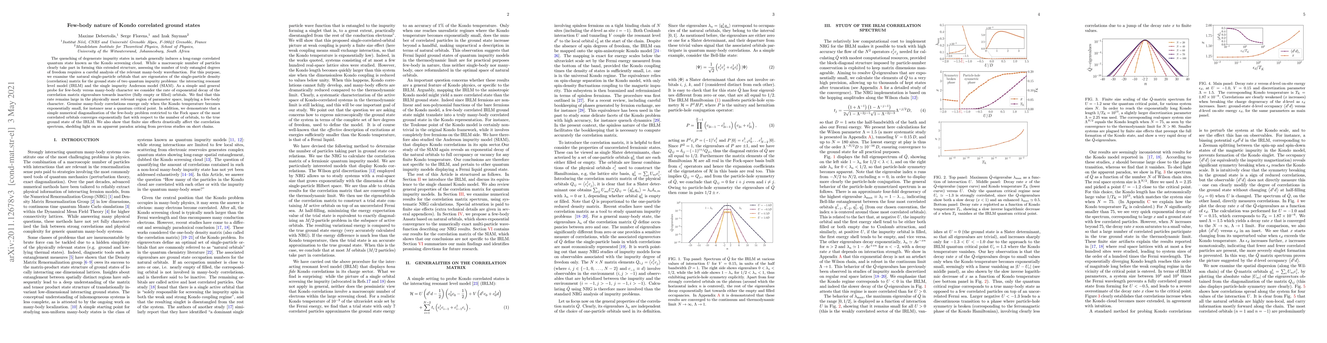 The quenching of degenerate impurity states in metals generally induces a long-range correlated quantum state known as the Kondo screening cloud. While a macroscopic number of particles clearly take part in forming this extended structure, assessing the number of truly entangled degrees of freedom requires a careful analysis of the relevant many-body wavefunction. For this purpose, we examine the natural single-particle orbitals that are eigenstates of the single-particle density (correlation) matrix for the ground state of two quantum impurity problems: the interacting resonant level model (IRLM) and the single impurity Anderson model (SIAM). As a simple and general probe for few-body versus many-body character we consider the rate of exponential decay of the correlation matrix eigenvalues towards inactive (fully empty or filled) orbitals. We find that this rate remains large in the physically most relevant region of parameter space, implying a few-body character. Genuine many-body correlations emerge only when the Kondo temperature becomes exponentially small, for instance near a quantum critical point. In addition, we demonstrate that a simple numerical diagonalization of the few-body problem restricted to the Fock space of the most correlated orbitals converges exponentially fast with respect to the number of orbitals, to the true ground state of the IRLM. We also show that finite size effects drastically affect the correlation spectrum, shedding light on an apparent paradox arising from previous studies on short chains.