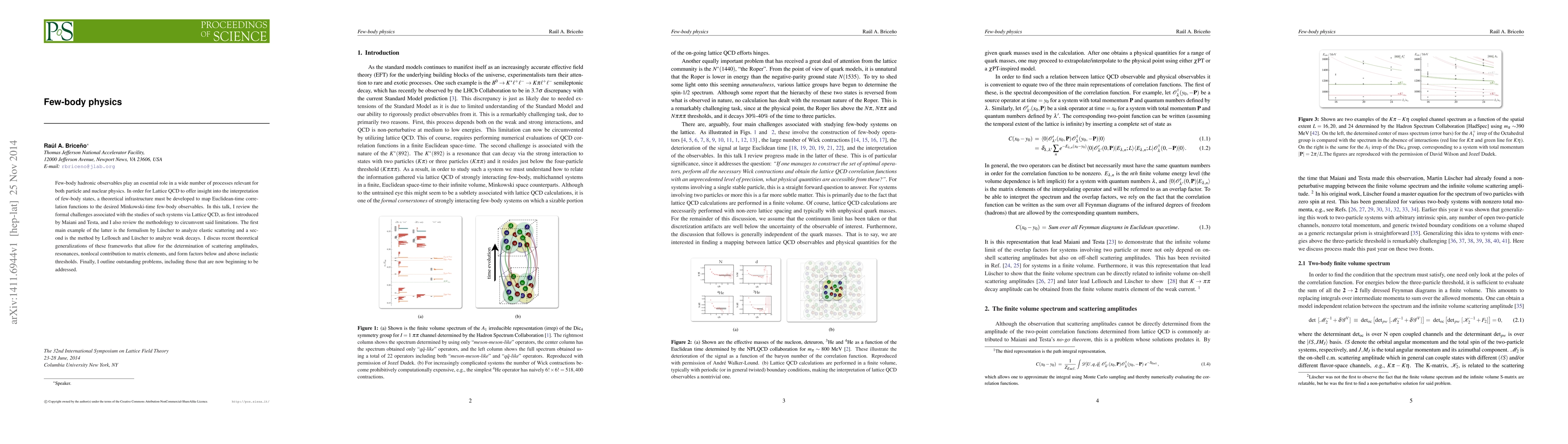This paper reviews the theoretical challenges and methodologies in using Lattice QCD to study few-body hadronic systems, focusing on Luscher's formalism for elastic scattering and the Lellouch-Luscher method for weak decays. It also discusses recent advancements and outstanding problems in mapping Euclidean-time correlation functions to Minkowski-time observables.