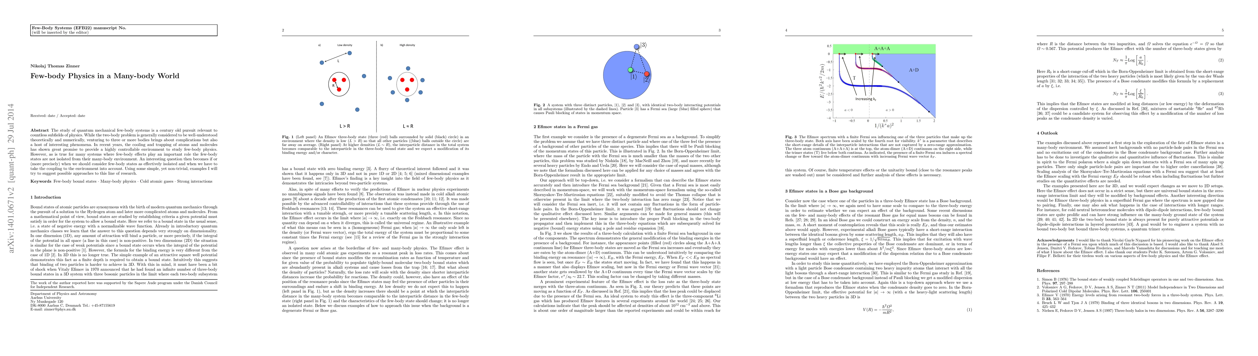 This paper explores the complexities of few-body quantum systems amidst a many-body environment, highlighting the intriguing phenomena that arise with three or more bodies. It investigates when few-body states can be considered isolated and when their coupling to the surrounding many-body environment must be accounted for, using illustrative examples to propose potential research approaches.