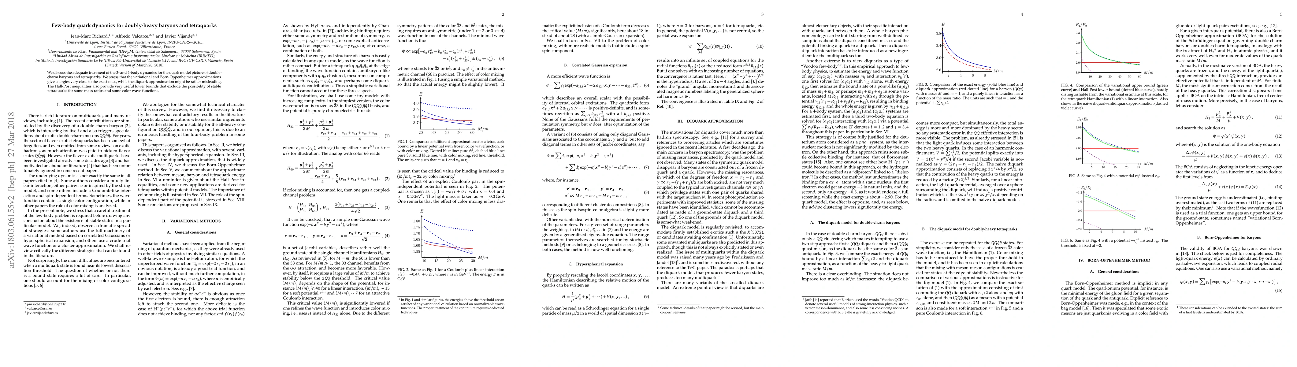 We discuss the adequate treatment of the 3- and 4-body dynamics for the quark model picture of double-charm baryons and tetraquarks. We stress that the variational and Born-Oppenheimer approximations give energies very close to the exact ones, while the diquark approximation might be rather misleading. The Hall-Post inequalities also provide very useful lower bounds that exclude the possibility of stable tetraquarks for some mass ratios and some color wave functions.