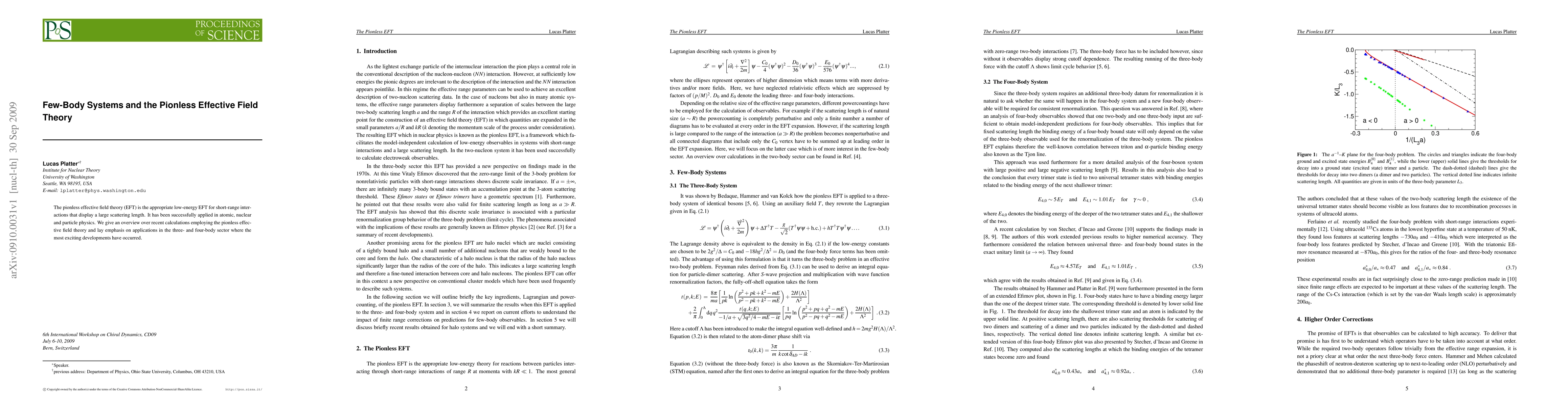 This paper provides an overview of recent advancements in the pionless effective field theory (EFT) for short-range interactions with large scattering lengths, focusing on its applications in three- and four-body systems in atomic, nuclear, and particle physics. The study highlights the most exciting developments in this field.