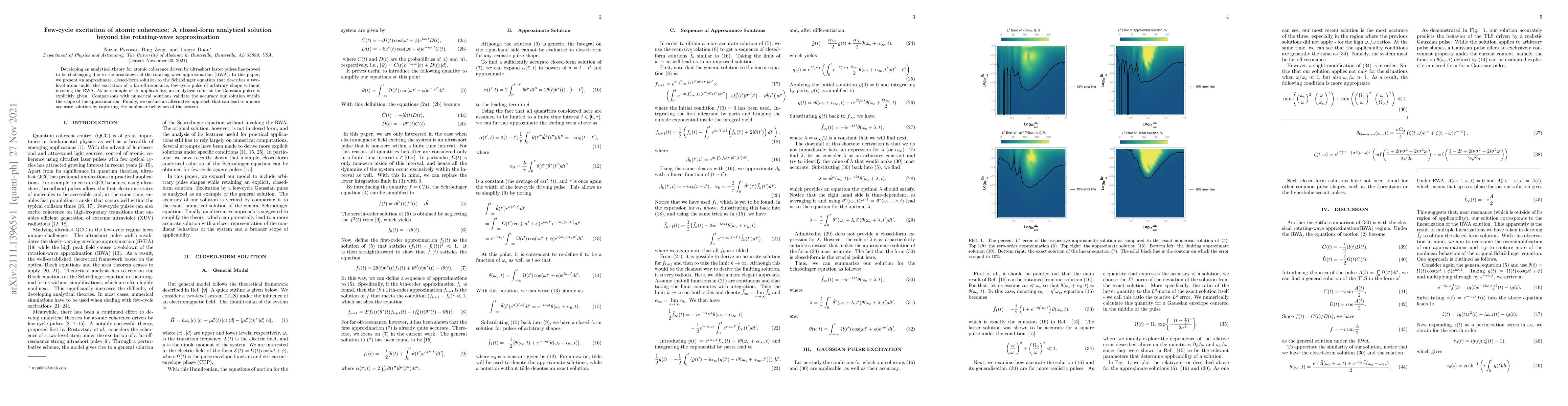 This paper presents an analytical solution to the Schrödinger equation for a two-level atom excited by few-cycle laser pulses, bypassing the rotating-wave approximation. The solution is validated against numerical results and an alternative method is proposed for capturing nonlinear system behaviors.