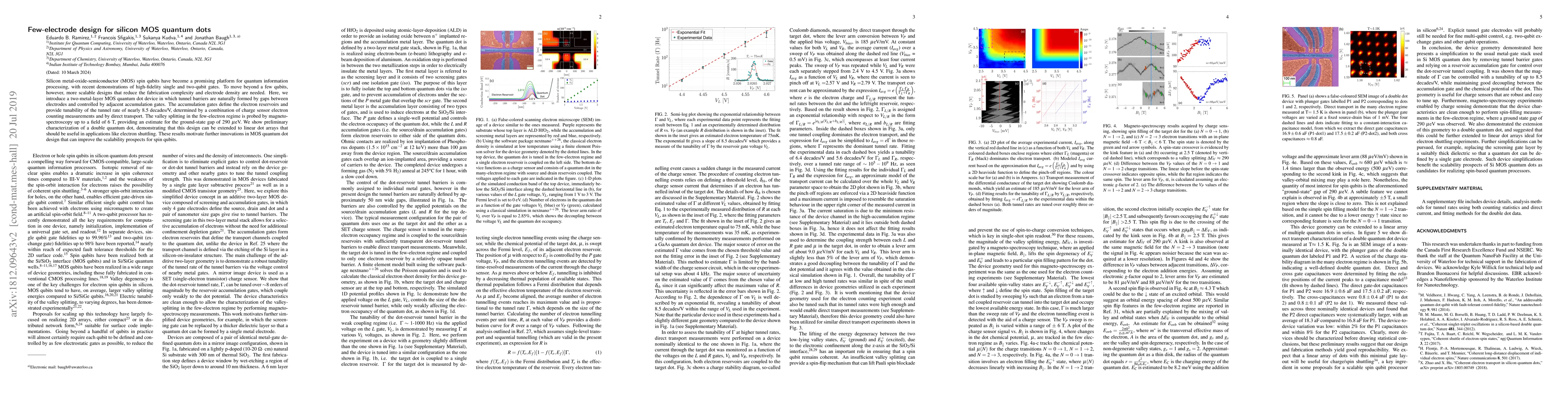 Researchers developed a new design for silicon MOS quantum dots with fewer electrodes, enabling tunability of tunnel rates and scalability for spin qubits. The design uses a two-metal-layer structure with adjustable gates to control electron reservoirs and gate the tunnel rate.