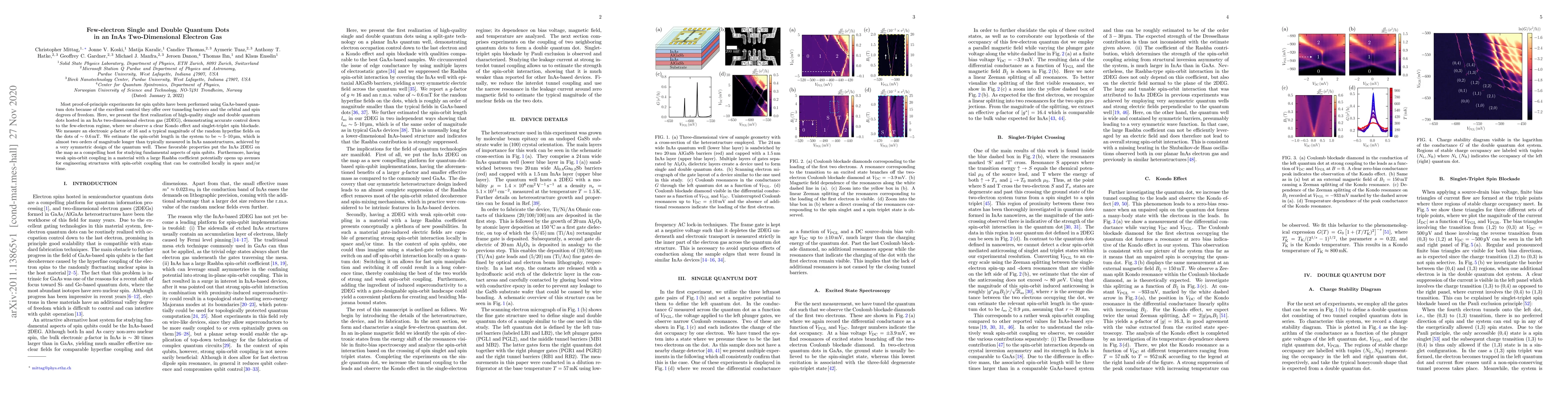 This paper reports the first high-quality single and double quantum dots in an InAs two-dimensional electron gas, demonstrating precise control in the few-electron regime and revealing a clear Kondo effect and spin blockade. The study highlights a significantly longer spin-orbit length and favorable properties for spin qubit research.