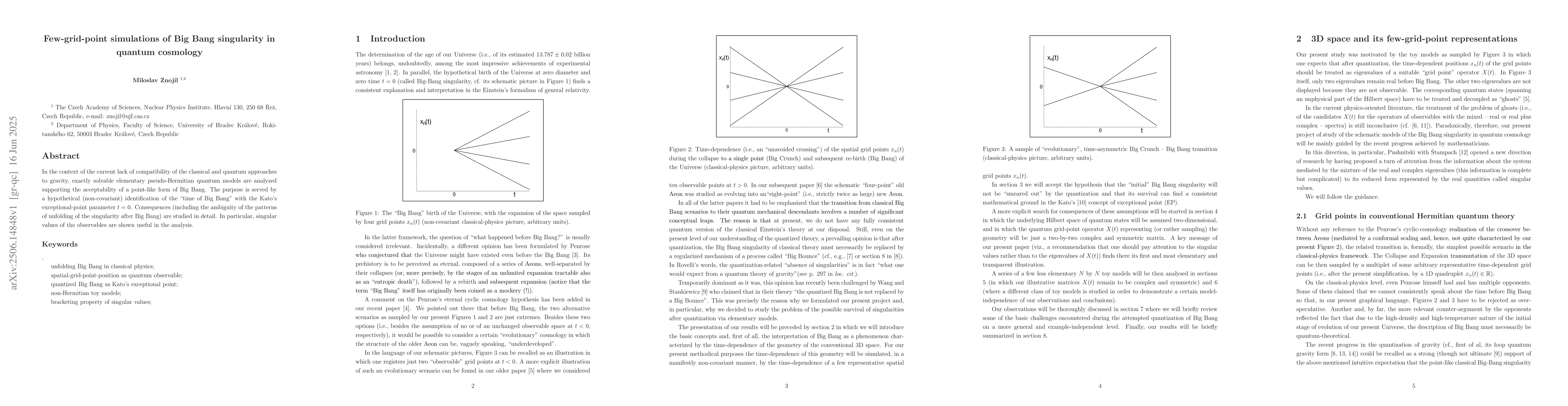 In the context of the current lack of compatibility of the classical and quantum approaches to gravity, exactly solvable elementary pseudo-Hermitian quantum models are analyzed supporting the acceptability of a point-like form of Big Bang. The purpose is served by a hypothetical (non-covariant) identification of the ``time of Big Bang'' with the Kato's exceptional-point parameter $t=0$. Consequences (including the ambiguity of the patterns of unfolding of the singularity after Big Bang) are studied in detail. In particular, singular values of the observables are shown useful in the analysis.