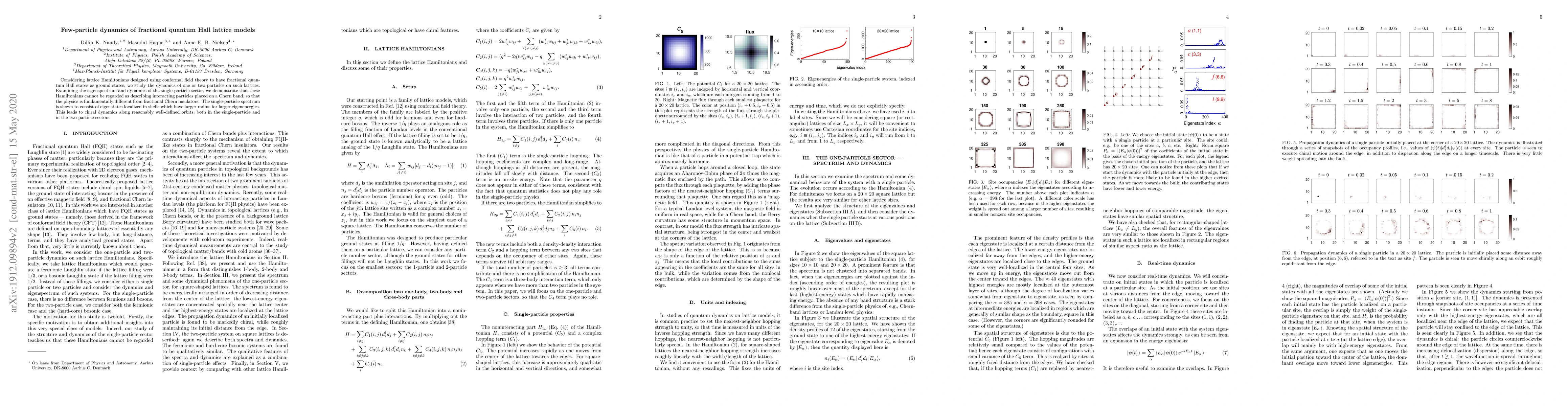This paper investigates the dynamics of one or two particles in fractional quantum Hall lattice models based on conformal field theory. It finds that these lattice Hamiltonians differ significantly from fractional Chern insulators, with localized eigenstates in shells and chiral dynamics along defined orbits.