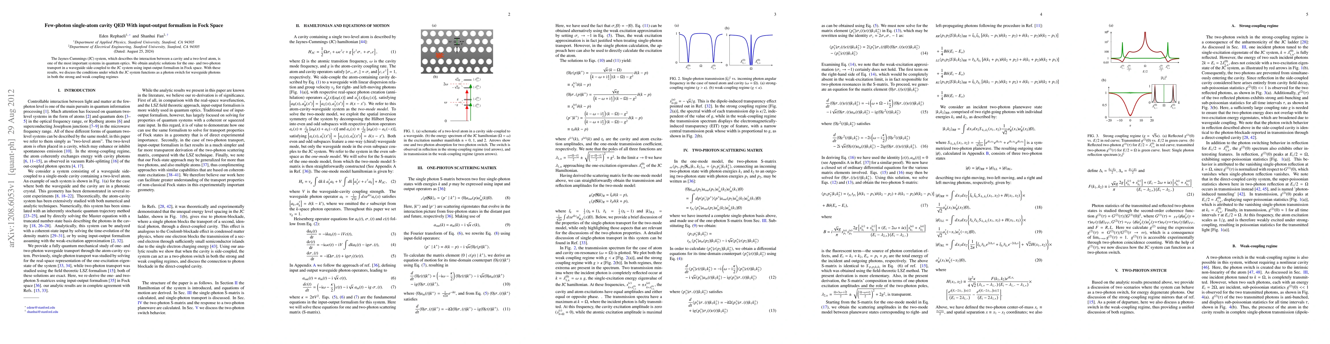 Researchers analyzed the Jaynes-Cummings system using input-output formalism in Fock space to understand when it functions as a photon switch for waveguide photons.