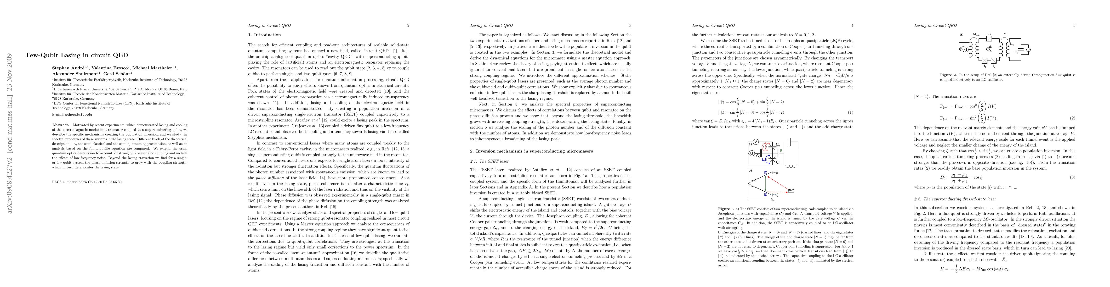 This paper investigates the mechanisms behind lasing in circuit quantum electrodynamics (QED) systems with few superconducting qubits coupled to a resonator, comparing semi-classical and semi-quantum approximations. It finds that while strong qubit-resonator coupling enhances lasing, it also increases phase diffusion, degrading the lasing state.