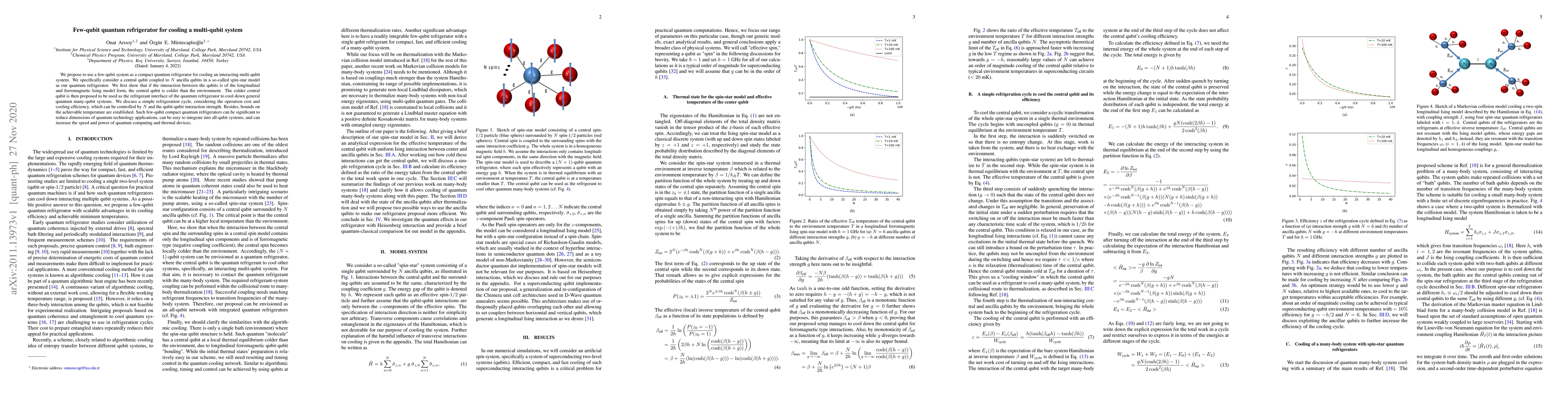 This paper proposes a few-qubit quantum refrigerator, specifically a spin-star model, for cooling a multi-qubit system by using a colder central qubit as a refrigerant interface. The study establishes bounds on achievable temperatures and discusses operational costs and cooling efficiency, highlighting potential benefits for quantum computing and thermal devices.