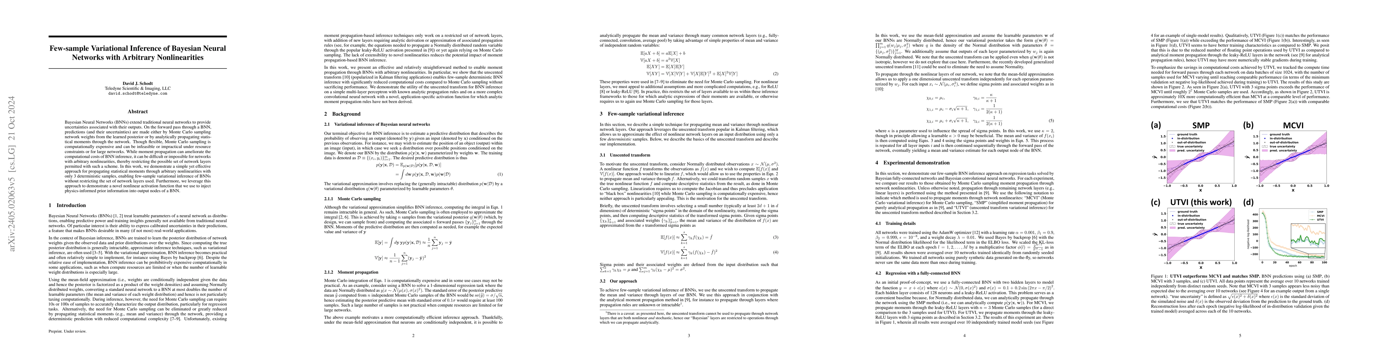 This paper presents a method for efficiently propagating statistical moments through arbitrary nonlinearities in Bayesian Neural Networks (BNNs) using only 3 deterministic samples, thereby enabling few-sample variational inference without restricting the network layers. It also introduces a novel nonlinear activation function to incorporate physics-informed priors into BNN outputs.