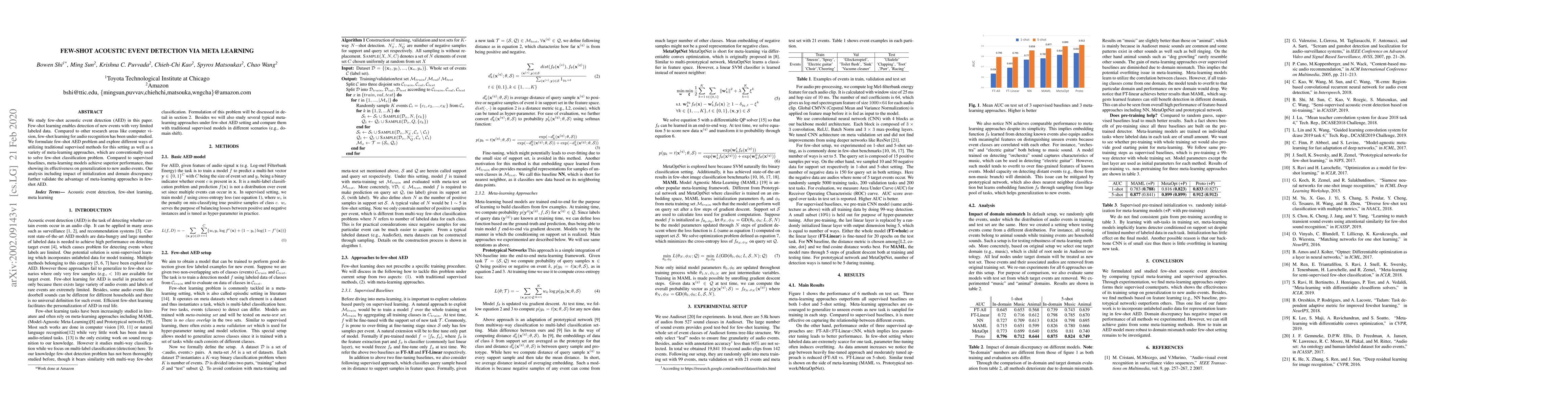 This paper investigates few-shot acoustic event detection (AED) using meta-learning, showing that meta-learning approaches outperform traditional supervised methods, especially in generalizing to new audio events with limited labeled data. The study highlights the effectiveness of meta-learning, particularly in addressing initialization and domain discrepancies.