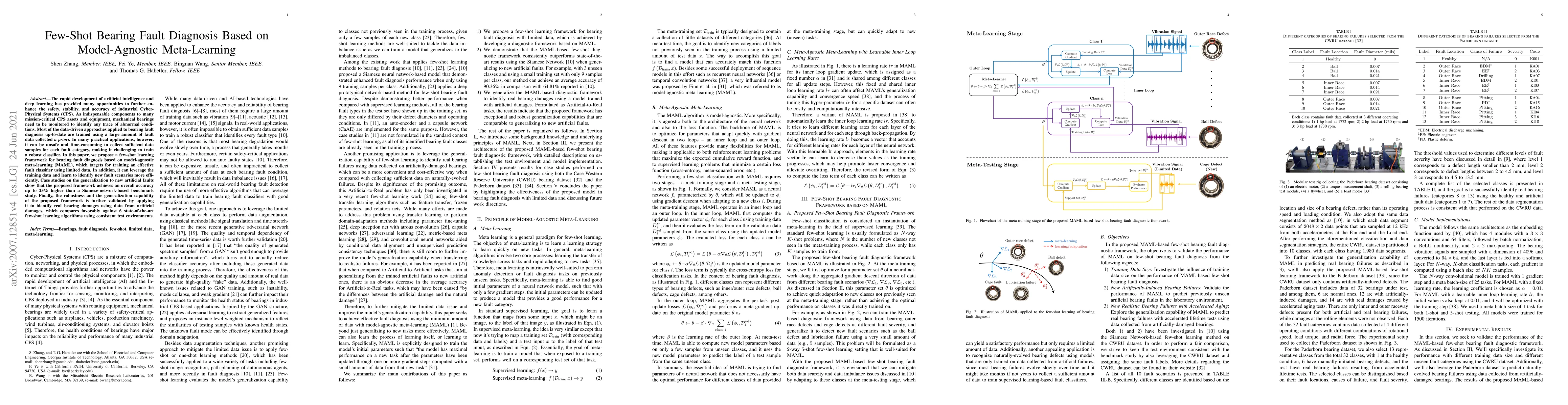 This paper proposes a few-shot learning framework for bearing fault diagnosis using model-agnostic meta-learning (MAML), enabling effective fault classification with limited data samples. The framework demonstrates superior generalization and accuracy compared to benchmark studies and state-of-the-art few-shot learning algorithms.